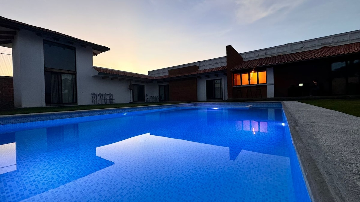 allotjament únic, té molt d'espai per gaudir amb el teu propi en el millor clima d'Atlixco, a 30 minuts del cd. de Puebla , una casa amb espais completament nous i espaiosos, la piscina està climatitzada amb panells solars, palapa equipada amb cuina americana bàsica i bany, 4 còmodes habitacions amb bany complet, zones verdes, amb gandules i hamaques, fes que el teu fogó a la llum de la lluna en un clima càlid amb ambient familiar i aparcament per a 4 cotxes dins de les instal·lacions.