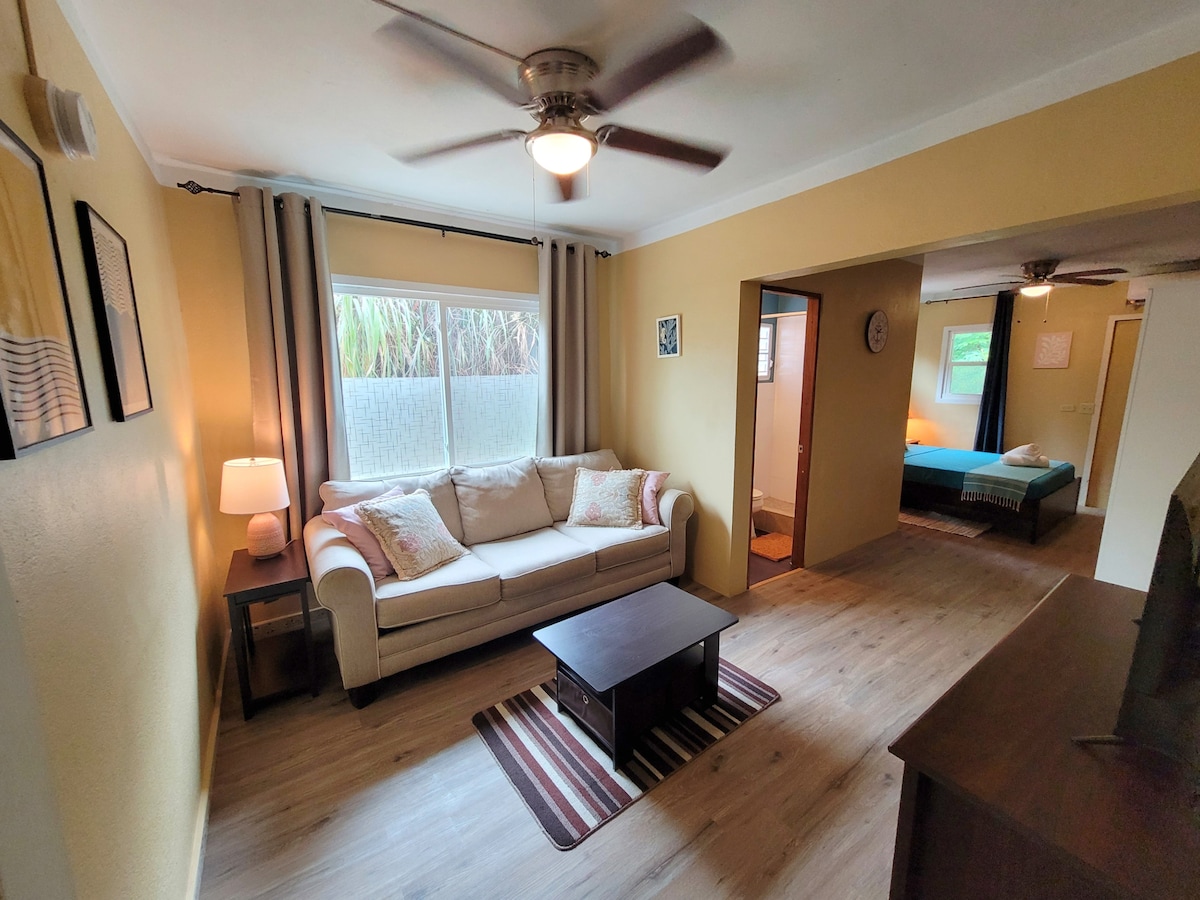 Tal com apareix a HGTV! Entorn tranquil, privat, a la selva i a poca distància a peu d'una platja impressionant! Els jardins tropicals envolten la vil·la de 3 unitats. Aquesta unitat d'estudi té una cuina totalment equipada, bany complet, racó de menjador, sala d'estar a l'aire lliure i dutxa d'hidromassatge a l'aire lliure, i un llit de matrimoni amb aire condicionat d'última generació i tranquil·litat. Pati independent i cobert amb graella de gas, taula de menjador i il·luminació per a nits tranquil·les i romàntiques. S'ofereixen cadires de platja, tovalloles i nevera per a les teves aventures a l'illa!