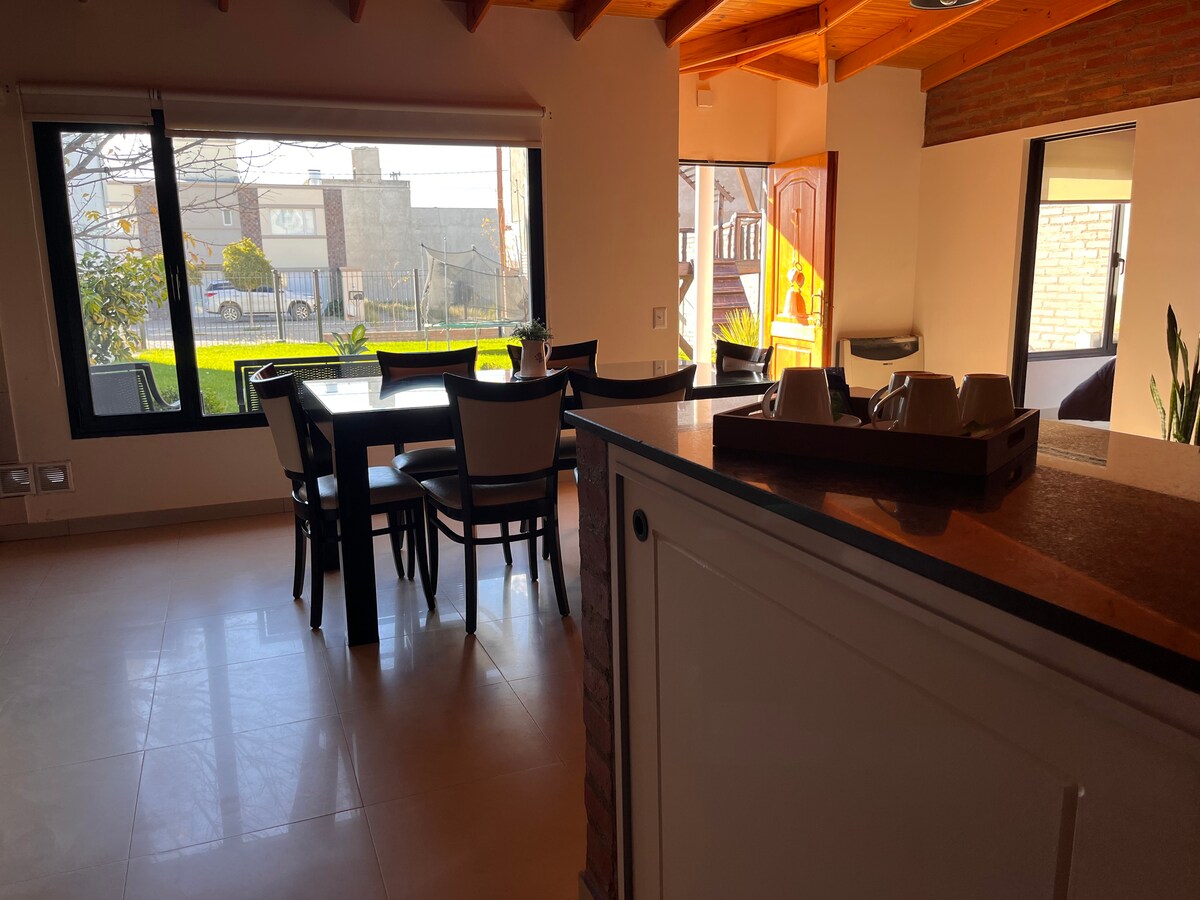 Relaxa't amb la teva família a la nostra primera casa, que ens agrada molt. Amb un enorme parc de 10x20 amb tobogan, trampolí i❤️ hamacs especials per a nens ‼️ Tenim tots els serveis, wifi, Netflix, Directv. Està situat en un barri tranquil, a prop de grans supermercats i botigues de queviures del barri. Graella, microones, cuina completa amb led de 43" i una bonica vaixella per a 6 persones bany amb bidet i pantalla . Ens encarregarem de fer que la teva estada sigui inoblidable.