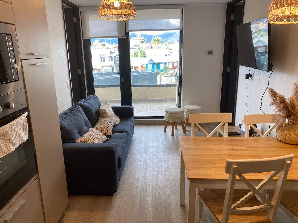 Desperta a pocs passos de la costa de Puerto Natales i meravella't amb el vent i les vistes des d'un apartament nou, lluminós i perfectament equipat per descansar abans o després de Torres del Paine. Ideal per a parelles o viatgers que busquen comoditat, però amb la calidesa d'una llar: llit còmode, cuina equipada i una ubicació estratègica per passejar per la costa i el centre de la ciutat.