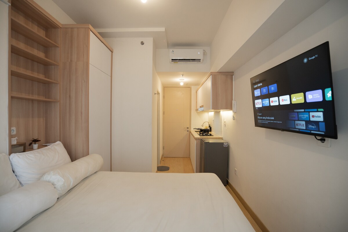 Our apartment is brand new and decorated minimally for comfort. We accept longer stay (weekly/monthly) at a special rate, inquiry with us! Room details : - Queen bed size 160 x 200 - Smart TV for Netflix chill - Working table - NON SMOKING, if you SMOKE, we charge IDR 1.000.000 to clean up