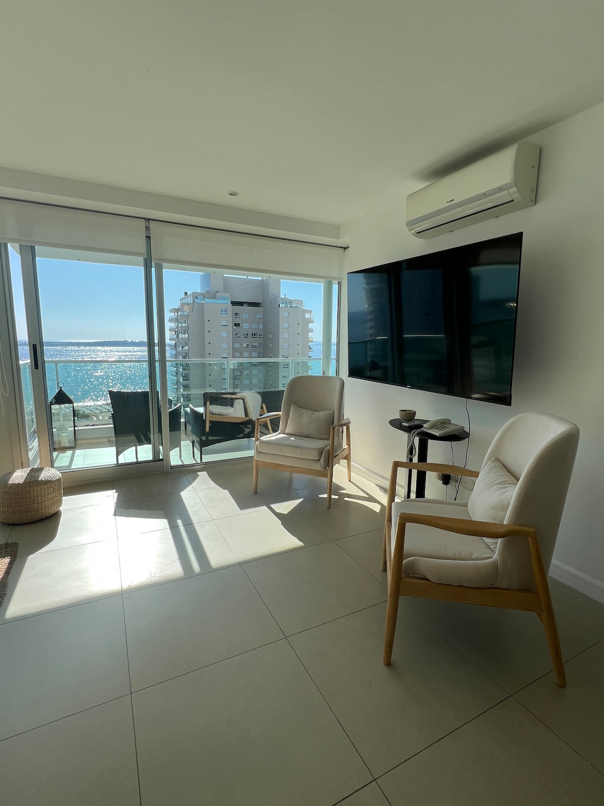 Modern apartament per a 2 persones totalment equipat amb espectaculars vistes al mar i a la península amb 2 balcons, situat a poques illes del centre i de les platges de mansa i brava. Inclou l'ús de garatge propi, equipament i serveis d'alta qualitat, com ara piscina coberta i externa, sauna, gimnàs, saló de negocis i recepció les 24 hores. Ideal per relaxar-se i gaudir de Punta del Este durant tot l'any o combinar descans i treball, ja que té una connexió ràpida a internet (200 Mbps).