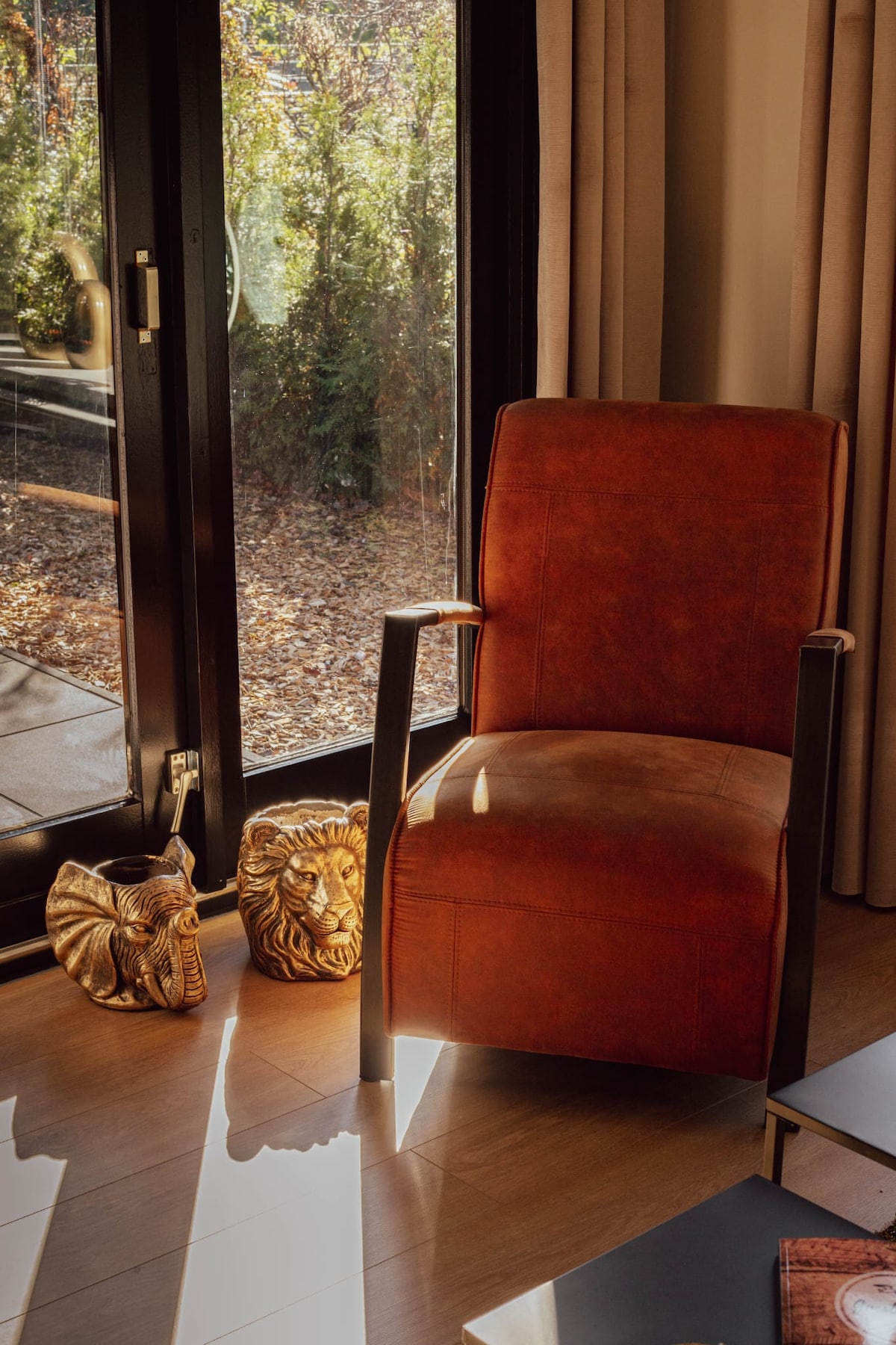 A luxurious Forest Suite on the edge of the Veluwe. Light, quiet and surrounded by forest and meadows — a place to truly unwind. The sauna is within walking distance; a complimentary sauna entry is included as a gift for the second guest. Welcome to this beautiful, newly built timber suite, suitable for up to 4 guests, located on the edge of Park De Eyckenhoff. The interior is calm and stylish, with a natural, warm feel. Large windows fill the space with natural light.
