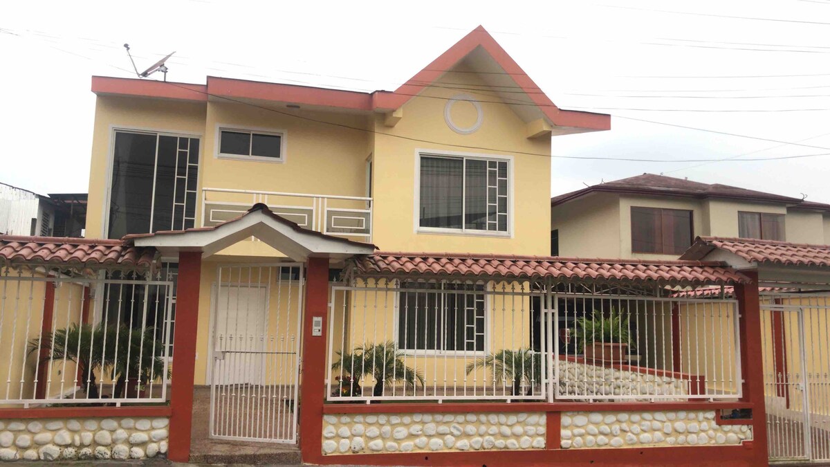 Casa còmoda i espaiosa en una zona residencial segura, amb garatge per a 2 vehicles, Smart TV, wifi, 4 habitacions completes per a vuit persones, té un pati espaiós molt segur, apte per a animals de companyia, cuina completa amb forn, dues habitacions, zona d'estudi, bugaderia amb rentadora i assecadora, 3 banys complets a les habitacions i mig bany a la bugaderia, a prop de Gran AKI, terminal terrestre, restaurants, complex aquàtic, complex esportiu