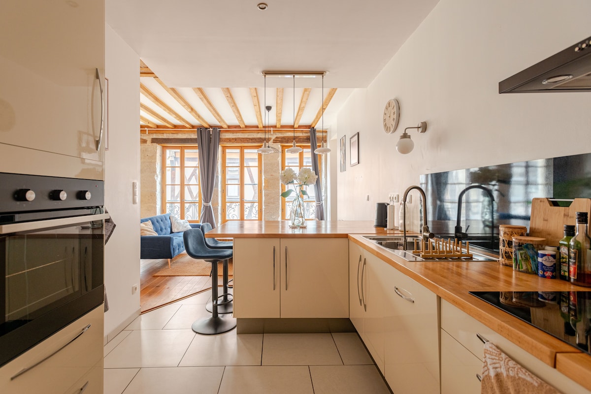 Et convidem a venir a descobrir la suite Bacchus al cor de la ciutat dels ducs de Borgonya. Aquest antic forn, amb el seu celler de volta, que antigament feia de taller d'artesà, ara us obre les portes d'un loft de luxe renovat per gaudir d'una estada a la capital del vi i la gastronomia de Borgonya. La seva ubicació cèntrica a la ciutat, a prop de restaurants, llocs d'interès i transport públic, és perfecta per descansar i relaxar-se.