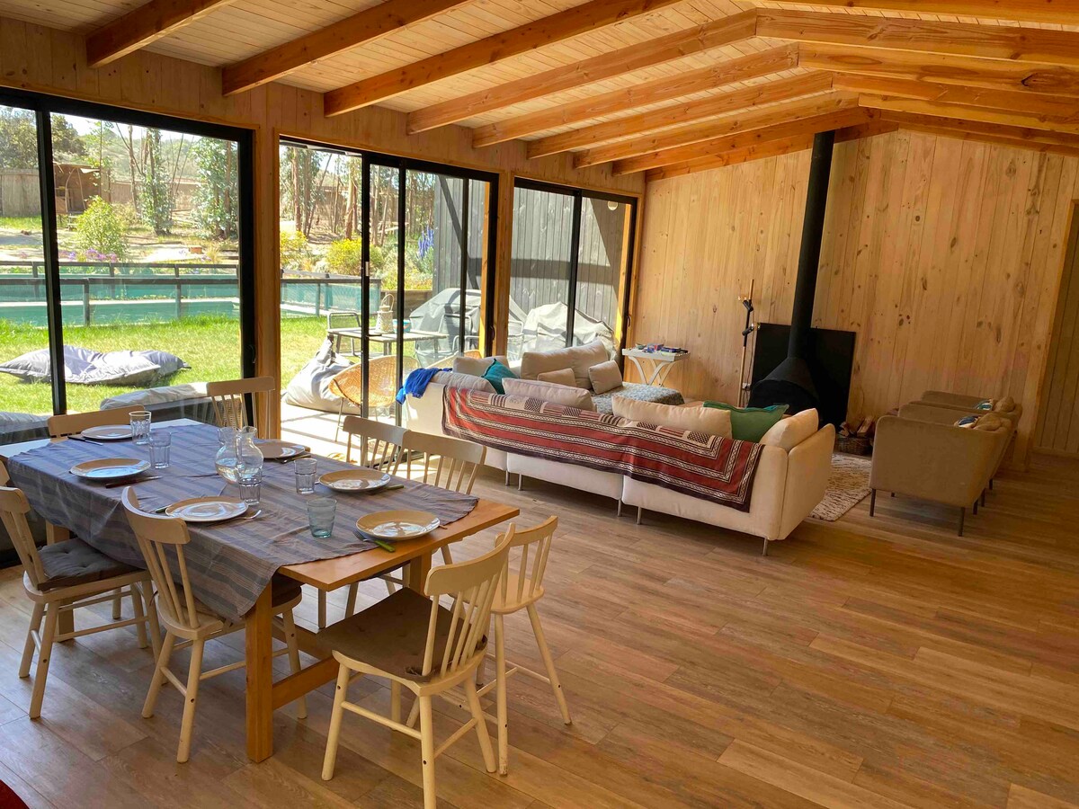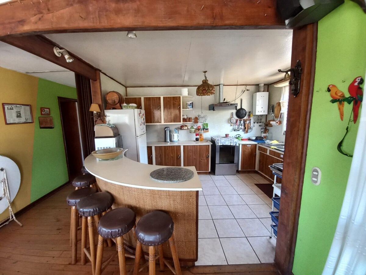 Excel·lent i tranquil·la casa privada totalment equipada amb piscina i gerra privada a Olmué, en una parcel·la de 2 mil metres quadrats. Estem entre els llocs 33 i 34 del sector Granizo, a poques maneres del carrer principal en un sector familiar. A 2 km del centre de la ciutat. La casa té 3 dormitoris, 1 doble, 2 dormitoris amb 2 llits, 1 bany i cuina totalment equipada. Disposem d'una llar de foc boscosa a la zona d'estar i una terrassa coberta davant de la piscina. Acceptem animals de companyia!!