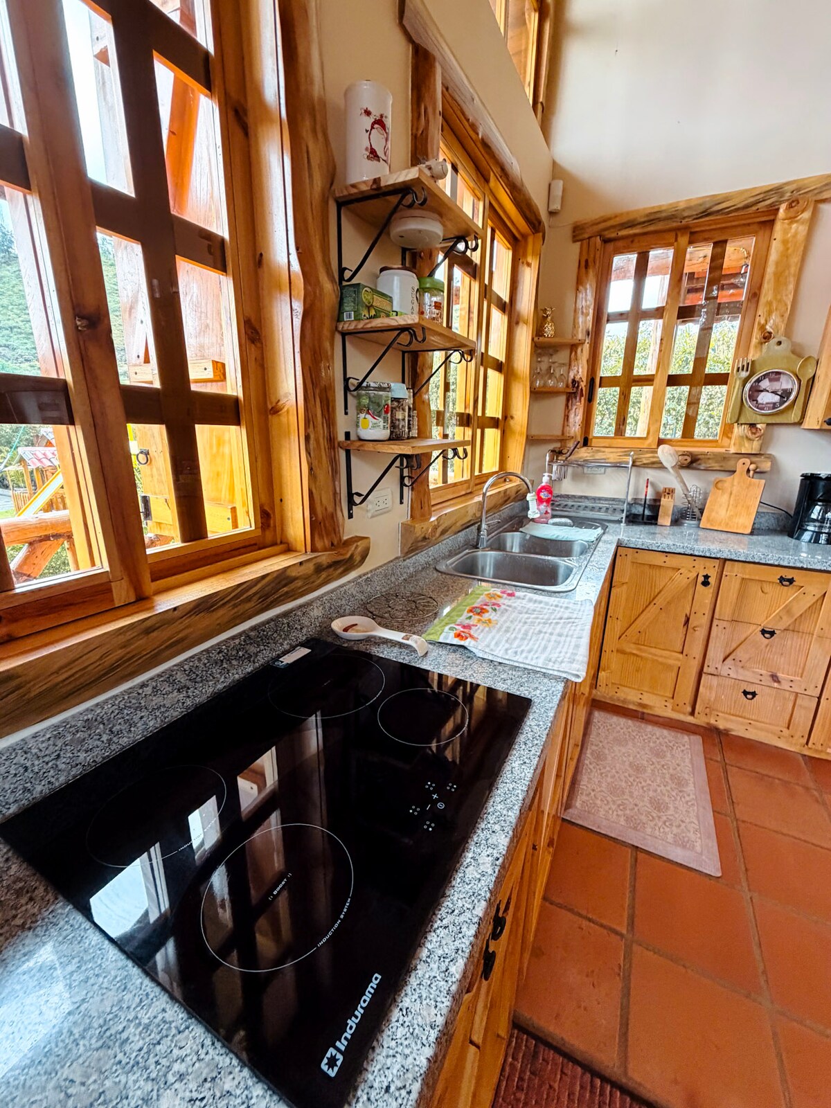 Absorbeix la calidesa i la llum d'una sala d'estar de planta oberta, amb sostres de luxe de 9 peus, un sostre voltat de 6 peus amb claraboia a la zona comuna/cuina i finestres extragrandes a tot arreu per gaudir d'una estada tranquil·la, tranquil·la i relaxant a Cuenca. Aigua calenta, wifi i electricitat ⚡️ les 24 hores per als teus dispositius gràcies al nostre sistema de piles de seguretat connectat a la xarxa. Nota: alguns electrodomèstics d'alta potència, com ara l'assecador i el bullidor d'aigua, no funcionen durant els talls elèctrics.