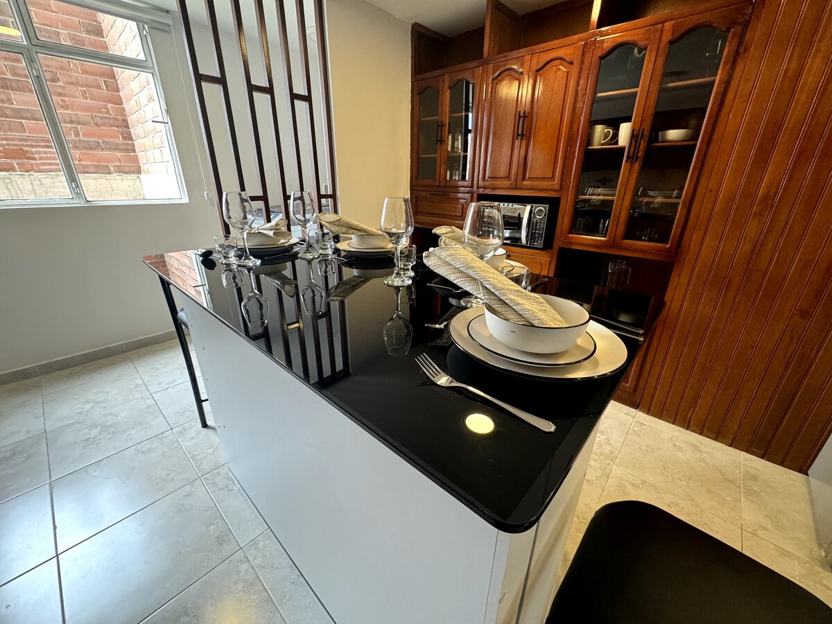 Viu una estada de luxe en aquest modern apartament complet a l'exclusiu edifici TERRAZZA. Perfecte per a parelles, viatgers o estades de feina! Gaudeix d'1 dormitori elegant, un bany complet, una cuina ben equipada, una sala d'estar acollidora, aparcament privat, accés gratuït al gimnàs i un vestíbul obert les 24 hores. A 5 minuts del centre històric i de les zones comercials, a 1 illa de l'Av. 10 d'agost. ¡Comoditat, luxe, estil i la millor ubicació en un sol lloc! T'esperem