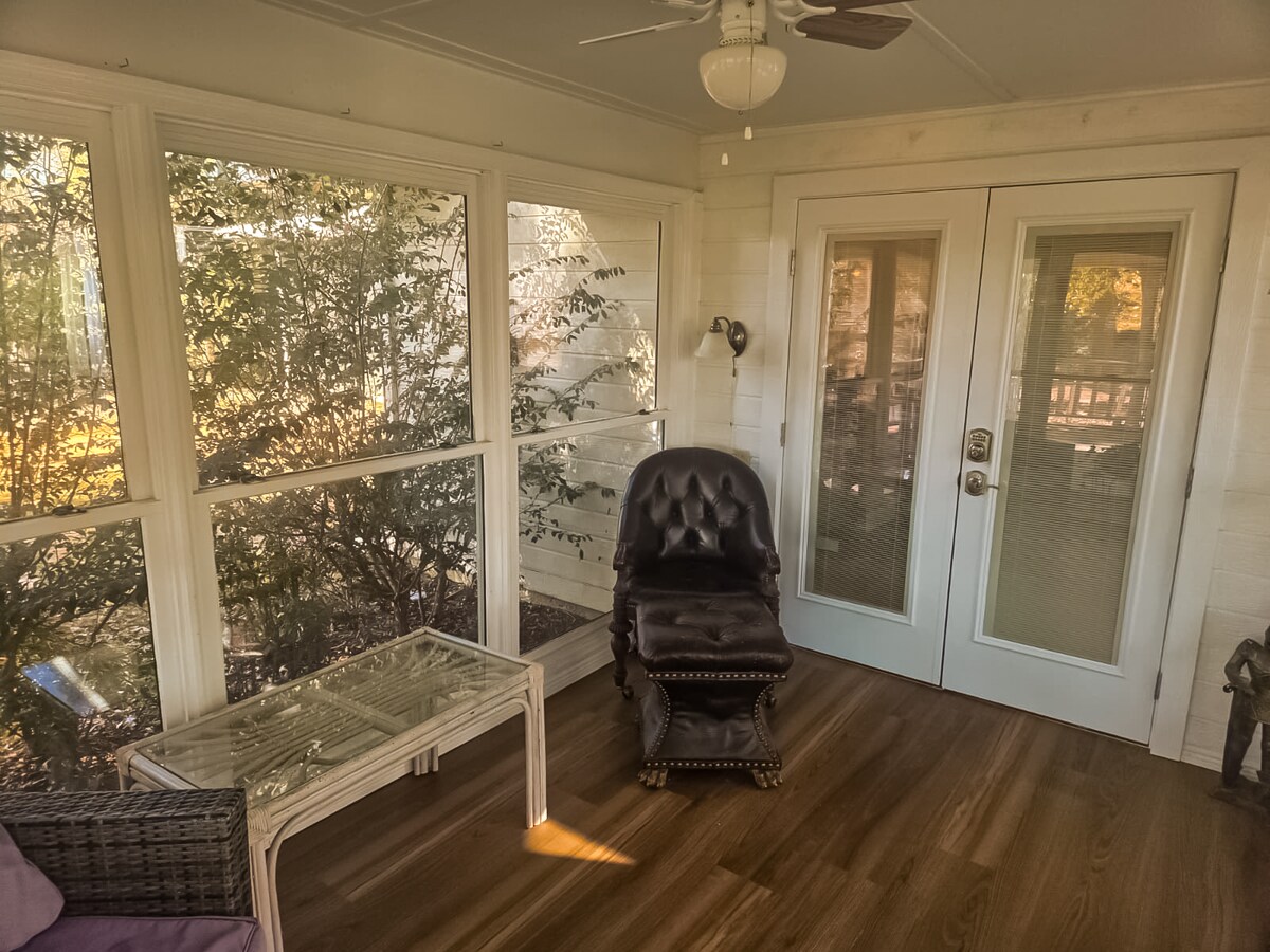 Relaxa't amb tota la família en aquest petit lloc del bell llac Eufaula. Una escapada meravellosa amb un porxo tranquil situat a la comunitat de Whispering Pines RV. Porta el teu carro de golf i travessa el tranquil barri tancat amb molts jubilats amables o camina pel camí darrere de l'allotjament per fer un passeig de 300 metres fins a la vora dels llacs. Porta el teu vaixell i llisca'l al llac Eufaula, a la zona d'esbarjo de River Bluff, just a l'altra banda de l'autopista 82. S'inclou un terreny d'emmagatzematge per a vaixells amb el lloguer per nit.