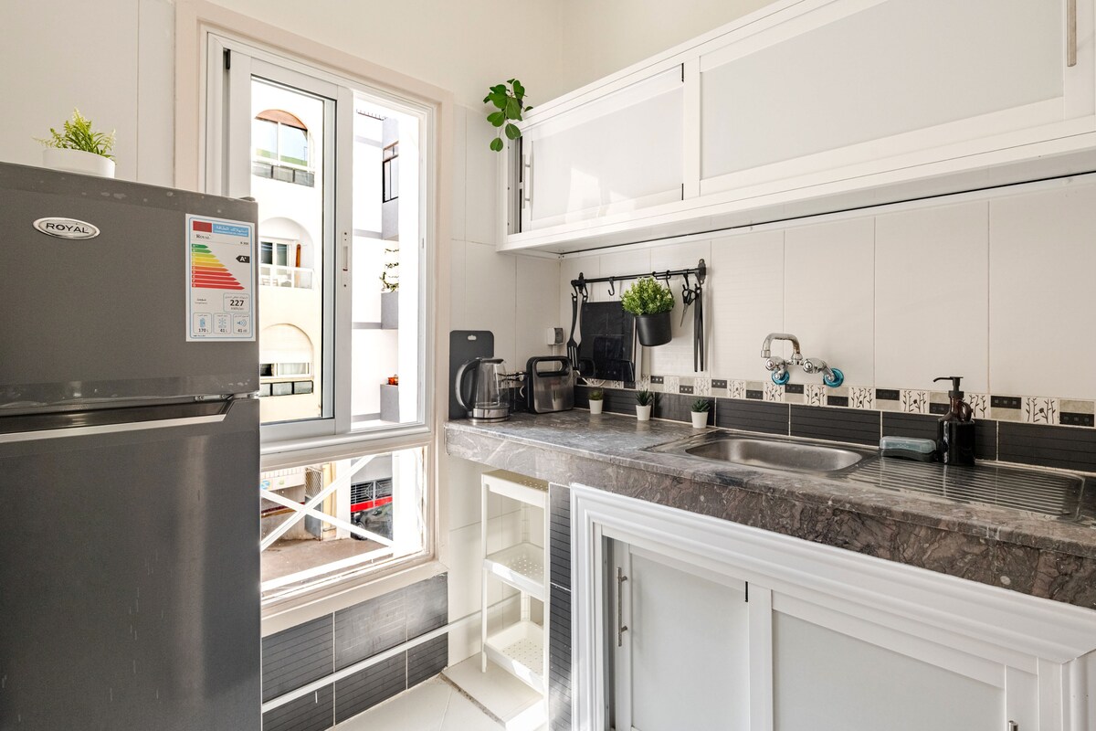 Profitez d'un logement élégant et central. Paisible avec un style tres cozy. Ce logement va vous charmer par sa tranquillité et sa décoration! Fraîchement rénové par nos soins il saura subvenir a tout vos besoin avec son équipement complet! Son aspect central bien situé au kilomètre 0 de la capital vous aidera a découvrir la belle ville de rabat tres facilement et à explorer avec tranquillité toutes ses petite facette!