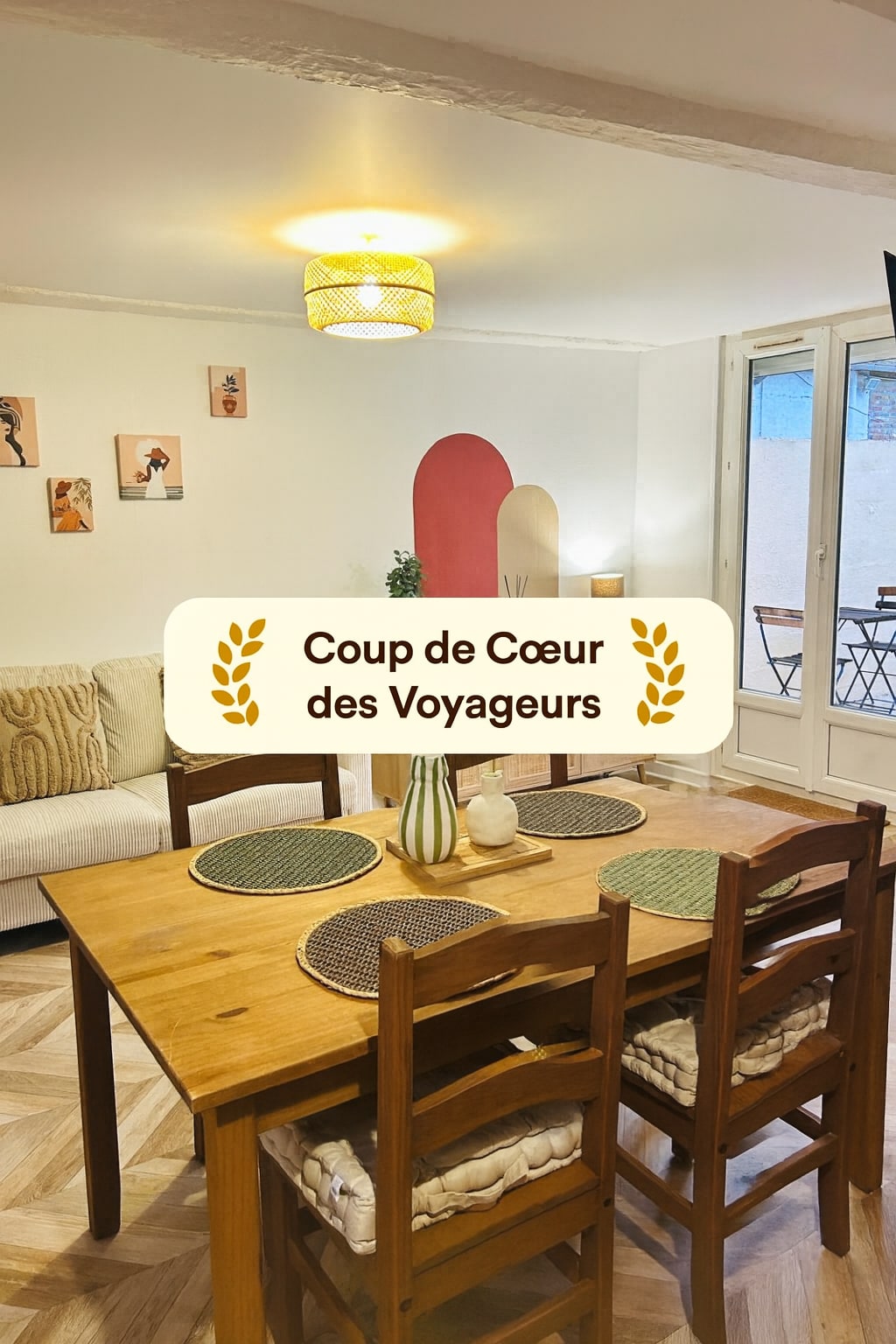 🚨 ✌️Allotja't a Beauvais d'una manera única en un apartament acollidor i elegant al centre de la ciutat amb una vista única de la Catedral de Sant Pere🤩, la joia de l'art gòtic, el seu cor és el més alt del món. Pots admirar-lo a la terrassa creuada on pots menjar ❤️ A 10 minuts a peu de l'estació de tren i a 8 minuts amb cotxe de l'aeroport. - Ubicació central -4 llits (llit de matrimoni + sofà llit) - Wifi + Televisor 📺 160 canals - Cuina moblada. - Cafetera ☕️ i🫖