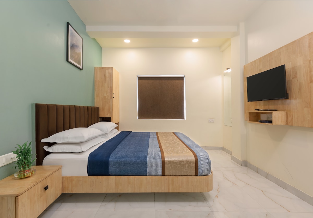 Unwind in our elegant Suite Room at Naksha Tree, Ramapuram. Perfect for couples or small families, it offers a spacious layout with a comfy queen bed, lounge area, private bathroom, AC, Wi-Fi, smart TV, and mini fridge. Enjoy added comfort in a peaceful, well-connected neighborhood near cafes, shops, and attractions.