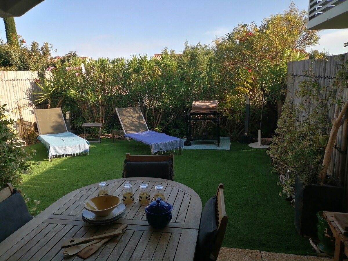 Totalment reformat el 2020, aquest estudi "capó " et seduirà tan bon punt arribis. Es pot caminar fins al centre de la ciutat, la Place des Lices i el port de Saint-Tropez. Tornant del mercat o un aperitiu al port a l'hora de posar el sol, també pots prendre els àpats a la terrassa i gaudir del jardí privat amb les seves hamacas i els llits de flors. La piscina de la residència també està a la teva disposició.