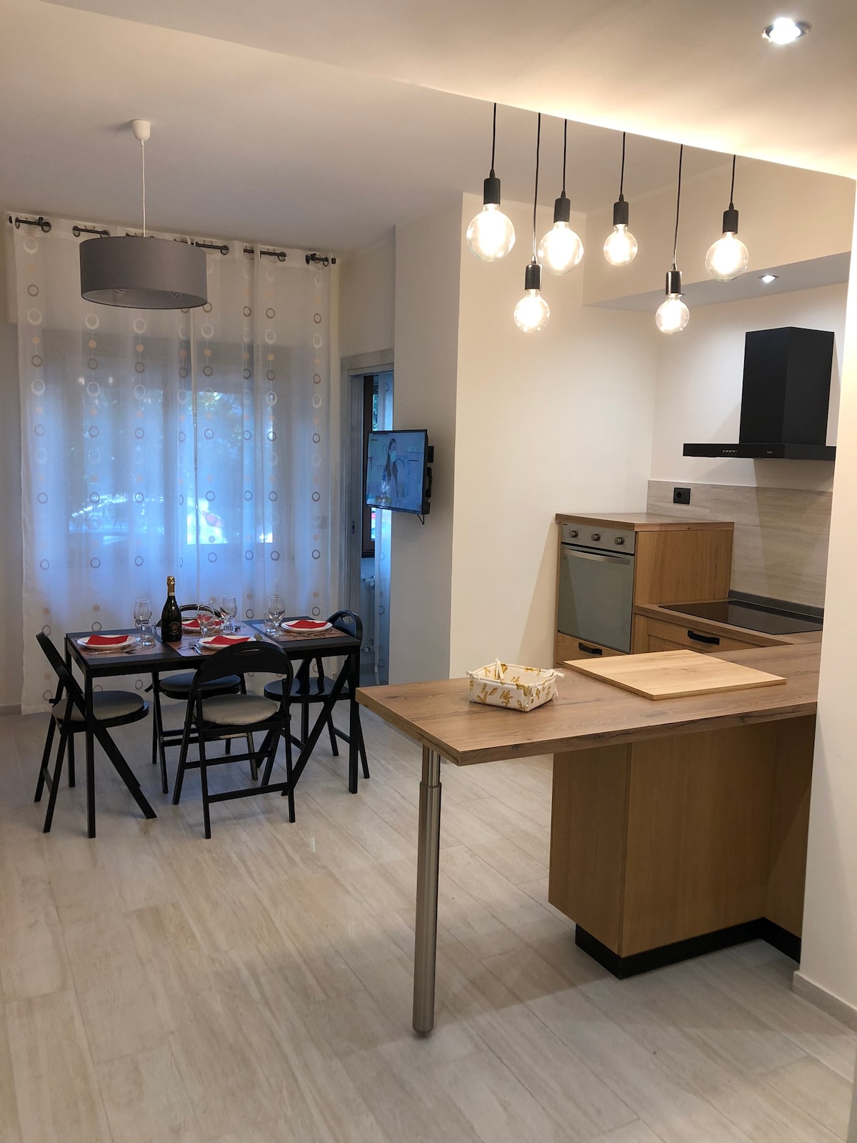 Pis de gamma alta amb aparcament privat i enorme terrassa. A 5/10 minuts a peu de la platja, l'estació de tren i el centre de la ciutat. L'escala exterior s'obre a un apartament exquisidament moblat amb sostre de fusta vista i terres de fusta, cuina d'última generació i aire condicionat central. El dormitori principal té un bany privat amb dutxa i banyera. Les zones d'estar i menjador estan equipades amb mobles moderns. El disseny fa que sigui perfecte per a dues parelles o una família de quatre persones.