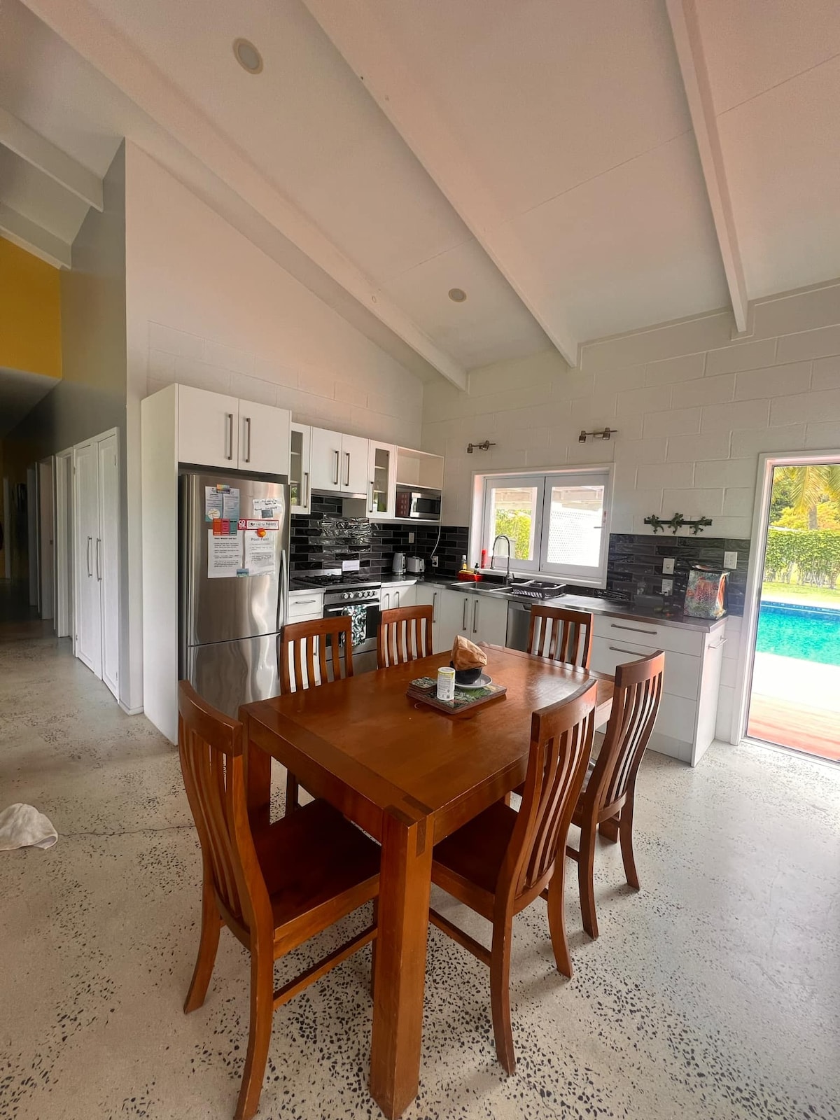 La nostra espaiosa vil·la a peu de platja està a només uns passos de la platja. Hi ha un gran porxo per menjar i relaxar-se, que té una vista clara de l'oceà. El treball d'artistes locals apareix a la vil·la i ofereix un ambient vibrant i càlid a les Illes Cook. Amb l'oceà a la porta, les hamaques i les vistes de la posta de sol, aquest és el lloc perfecte per relaxar-se, desconnectar i gaudir de la vida de l'illa. Disposem d'internet il·limitat (a través de Starlink), filtre UV per a l'aigua potable i AIRE CONDICIONAT recentment instal·lat.