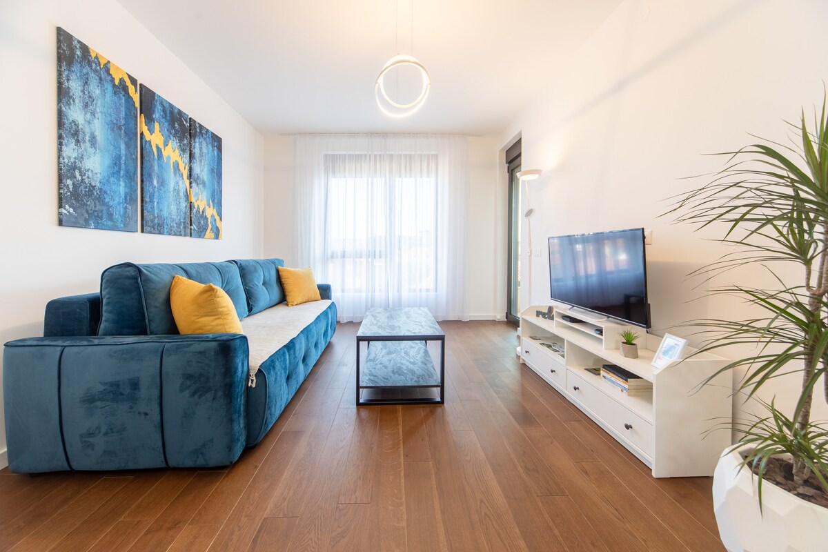 We are very pleased to welcome You as our guest. A spacious apartment is fully equipped for Your carefree and comfortable stay. Modernly designed, one-bedroom apartment features a living room, a kitchen with a dining room, bathroom, and a terrace. For all guests is provided: free parking, Wi-Fi, air-conditioner, cable TV, clean towels, and bedsheets.
