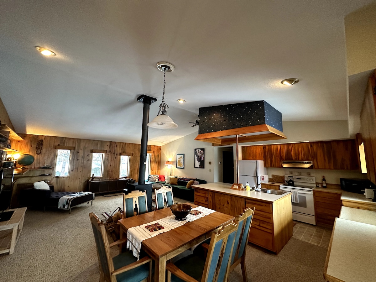 Treu-te les botes i gaudeix d'una cabana única, recentment renovada i acollidora dissenyada professionalment enfront del riu Bitterroot, un rierol de truites de cinta blava. Millor encara, agafa un pal per provar la teva sort amb la pesca. Què et sembla un passeig en bicicleta des de la cabana que et porta al llarg del riu fins al centre històric de Stevensville, la ciutat més antiga de Montana, fins a petites botigues i deliciosos aliments locals. Per als amants de la neu, estem a minuts de l'espectacular Lolo Pass i de les zones d'esquí Lost Trail.