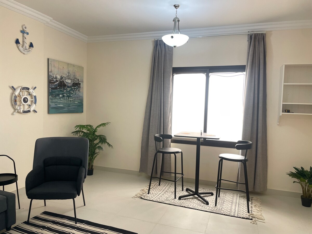 Escapa't al cor de la platja de Dahariz, Salalah, al nostre elegant apartament de 2 dormitoris. Gaudeix de l'encant de la costa, amb cafeteries i restaurants a només uns passos. Gaudeix de les costes assolellades i un ambient vibrant. Relaxa't en dormitoris acollidors, comparteix històries a la sala d'estar i cuina a la cuina ben equipada. Els nostres amfitrions atents garanteixen una estada inoblidable. Gaudeix de l'atractiu de la platja de Dahariz: reserva ara per a les teves vacances perfectes a Salalah!