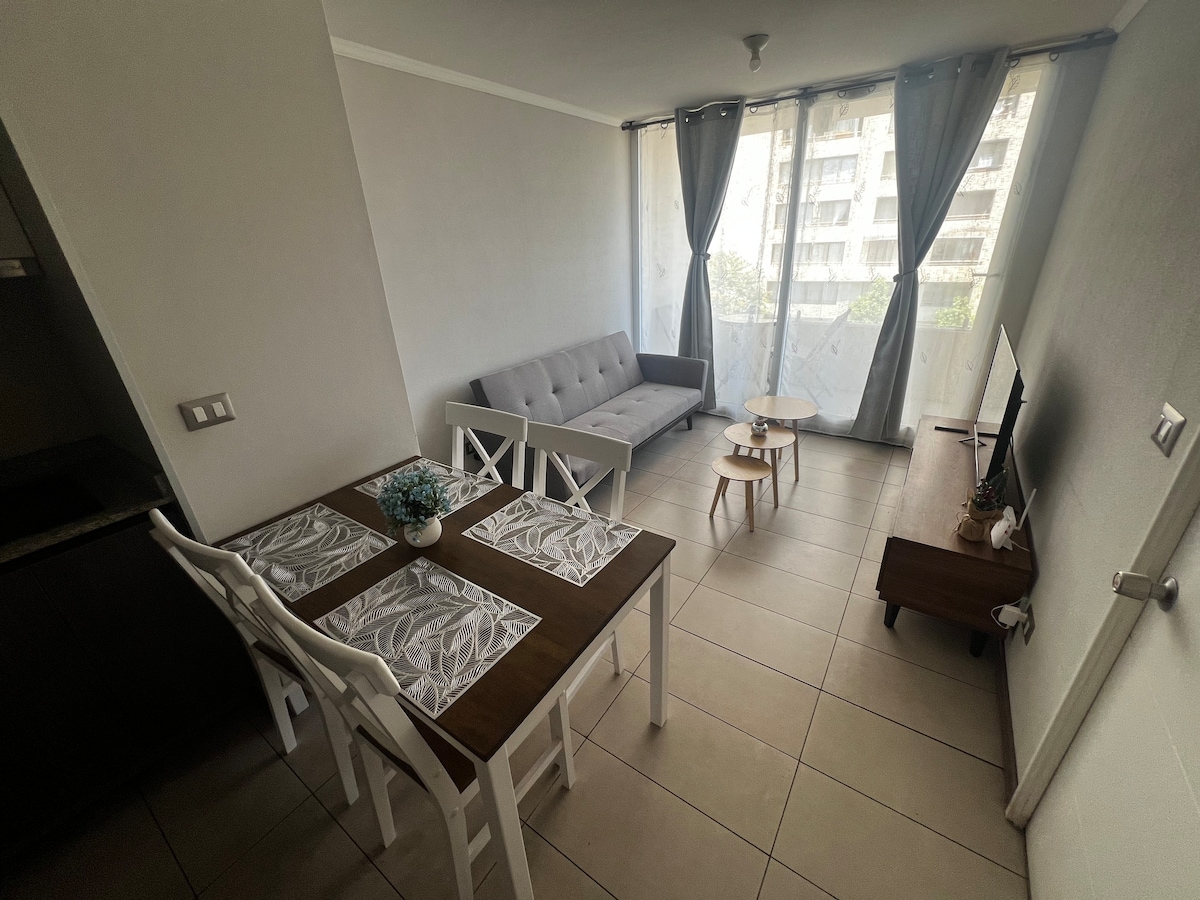 Pis d'1 dormitori, totalment moblat amb tot el que necessites per gaudir d'una estada excel·lent, terrassa a la planta 19 amb una vista preciosa de la muntanya dels Andes i de la ciutat. La ubicació és ideal per descobrir Santiago a peu, a prop de dues atraccions turístiques principals i de l'estació de metro (Bellas Artes), Parc Florestal, Cerros San Cristóbal i Santa Llúcia, Plaça d'Armes, Pati Bellavista i Lastarria, restaurants i cafeteries. L'apartament és ideal per a parelles, aventurers i viatgers de negocis.