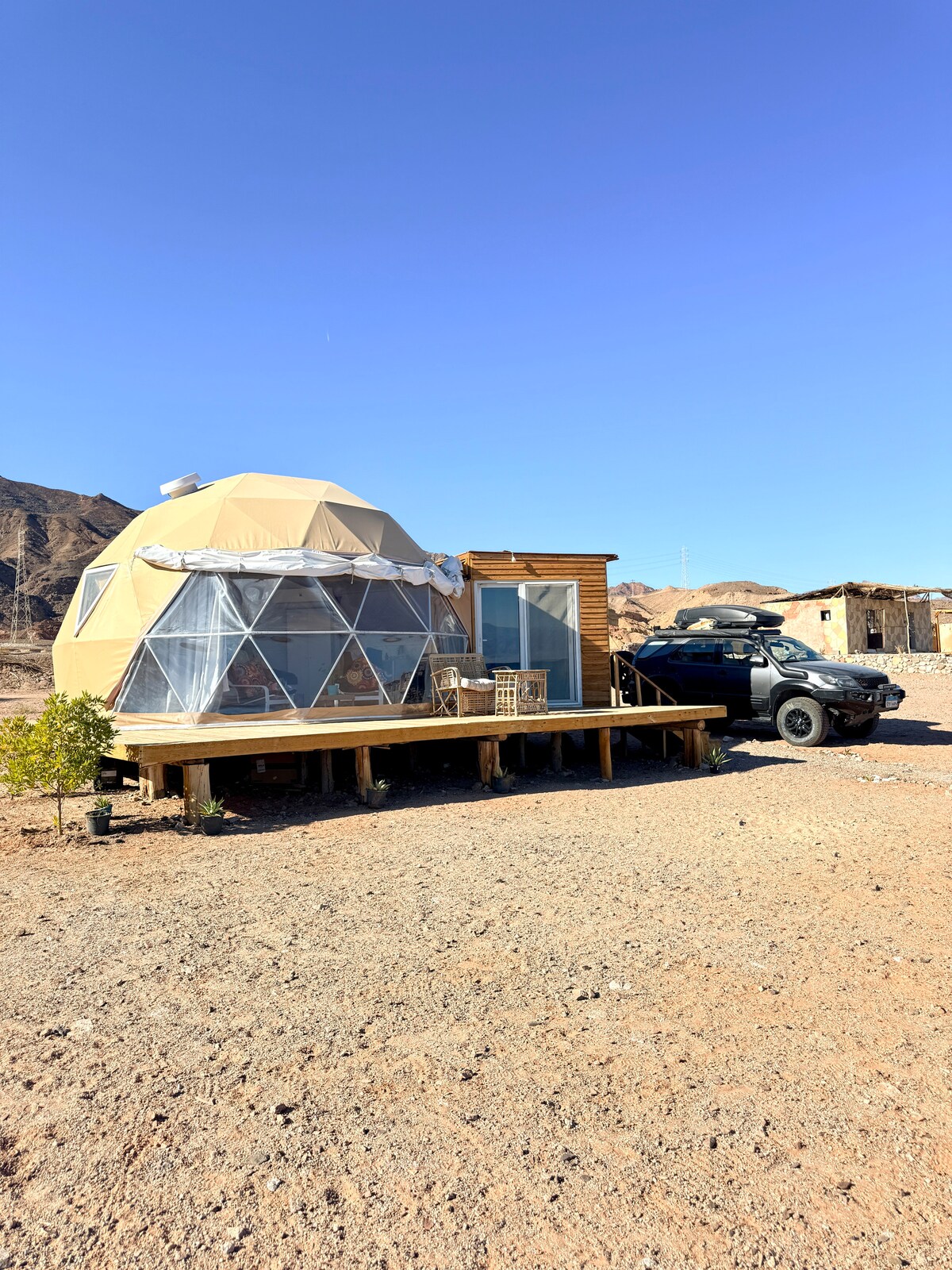 Welcome to your dream escape in Dahab!Nestled amidst a serene farm and surrounded by the majestic Sinai mountains, this two-story earth home is the perfect fusion of nature and luxury. Crafted entirely from clay and wood, our one-of-a-kind eco-home offers you a truly unique experience, where sustainable living meets comfort and style. Whether you're looking to disconnect from the hustle of city life or indulge in a peaceful retreat, this stunning earth home is the ideal destination.