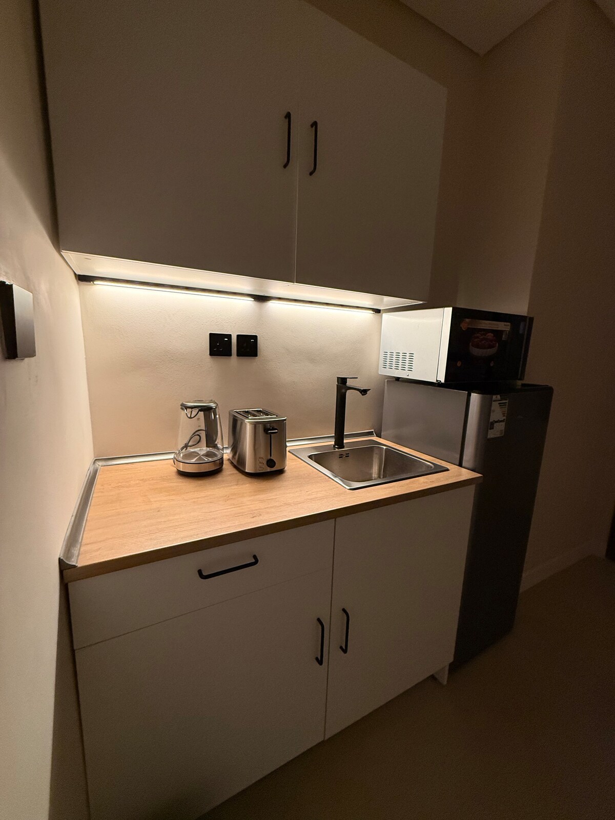 Informació sobre la teva estada Un apartament net i modern a un pis alt amb un ambient tranquil i relaxant. Gaudeix d'una vista oberta, llum natural i un espai senzill dissenyat per a la comoditat. Detalls del pis L'allotjament inclou un dormitori acollidor, una sala d'estar lluminosa, una cuina totalment equipada i banys nets, perfectes per a estades curtes o llargues. Accés i serveis Accés independent, aparcament públic gratuït, wifi ràpid i seguretat les 24 hores. Notes del viatger No s'hi permet fumar, fer-hi festes ni fer-hi soroll. Tracta l'espai amb cura.