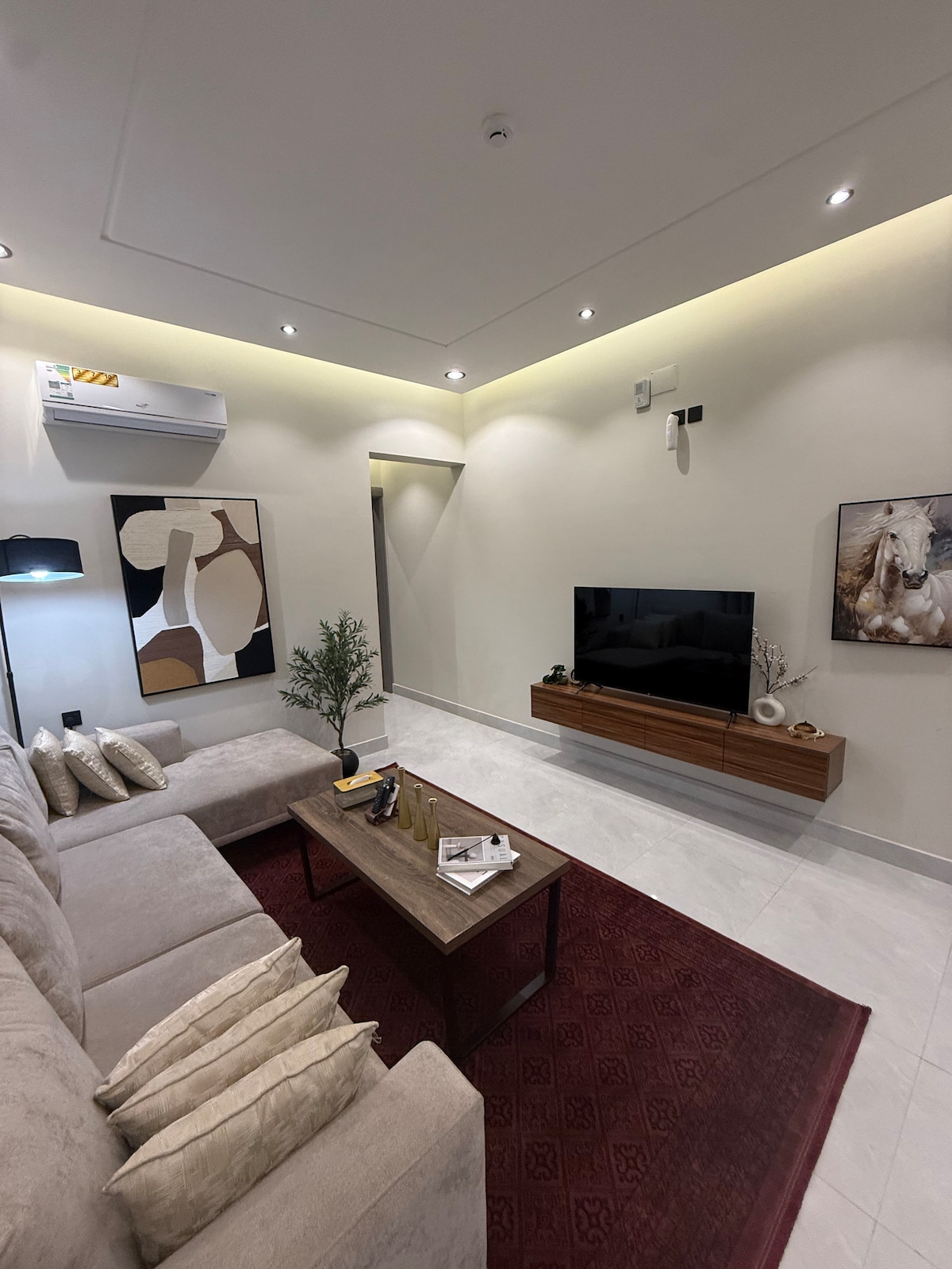 - Luxe i elegància: disseny interior elegant i ambient còmode amb mobiliari de luxe i decoracions modernes. - Neteja i esterilització: especial atenció a la neteja i esterilització després de la sortida de cada client per garantir la comoditat dels hostes. - Entreteniment: televisor de 75 polzades amb Netflix i Shahid, i un sistema de so modern per a una experiència d'entreteniment completa. - Comoditats: totes les comoditats estan disponibles, incloent-hi diversos jocs i una màquina de cafè per a una estada agradable. Gaudeix d'una estada inoblidable al nostre apartament únic, on la comoditat i l'elegància es troben al seu millor nivell sota un mateix sostre.