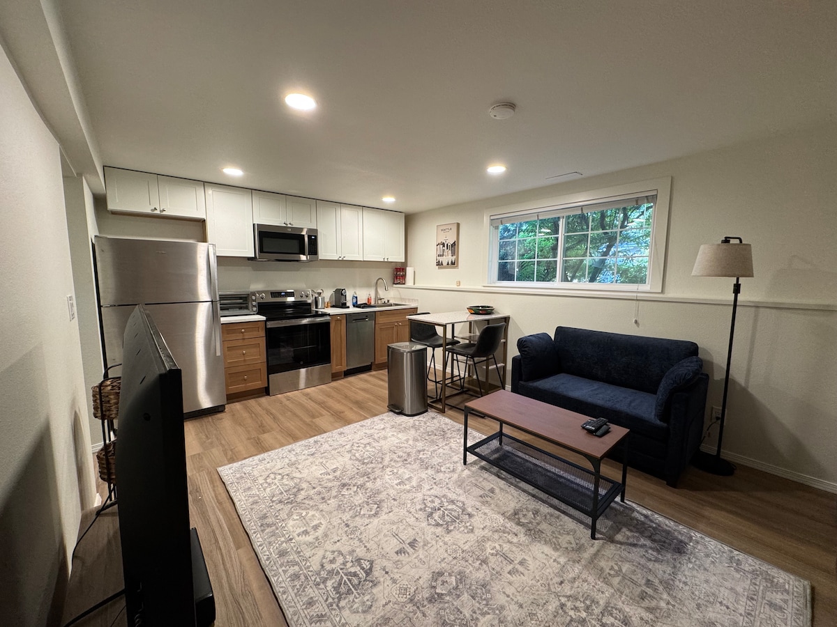 Et donem la benvinguda a la nostra acollidora casa de convidats ADU, situada al soterrani de la nostra casa de nova construcció. Un barri tranquil i segur amb accés ràpid a les autopistes 405 i 520. Pots explorar fàcilment els propers Bellevue, Kirkland i la gran zona de Seattle. Tingues en compte que el nostre Airbnb es troba a sota de la cuina. Volem ser sinceros i transparents al respecte per establir expectatives precises. Els nostres dies laborables comencen a 6.30/7am i és possible que ens sentis caminar per la cuina si ets sensible al soroll.