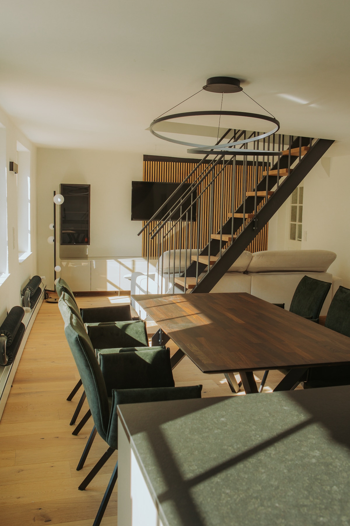 Our cozy gallery apartment in Regensburg's old town offers you the perfect starting point to explore the city and all other sights. Both bathrooms and the kitchen are newly renovated and offer everything you need. The open architecture gives the accommodation a special flair. Please note that the two rooms are connected by the stairs, and therefore not separated by a door.