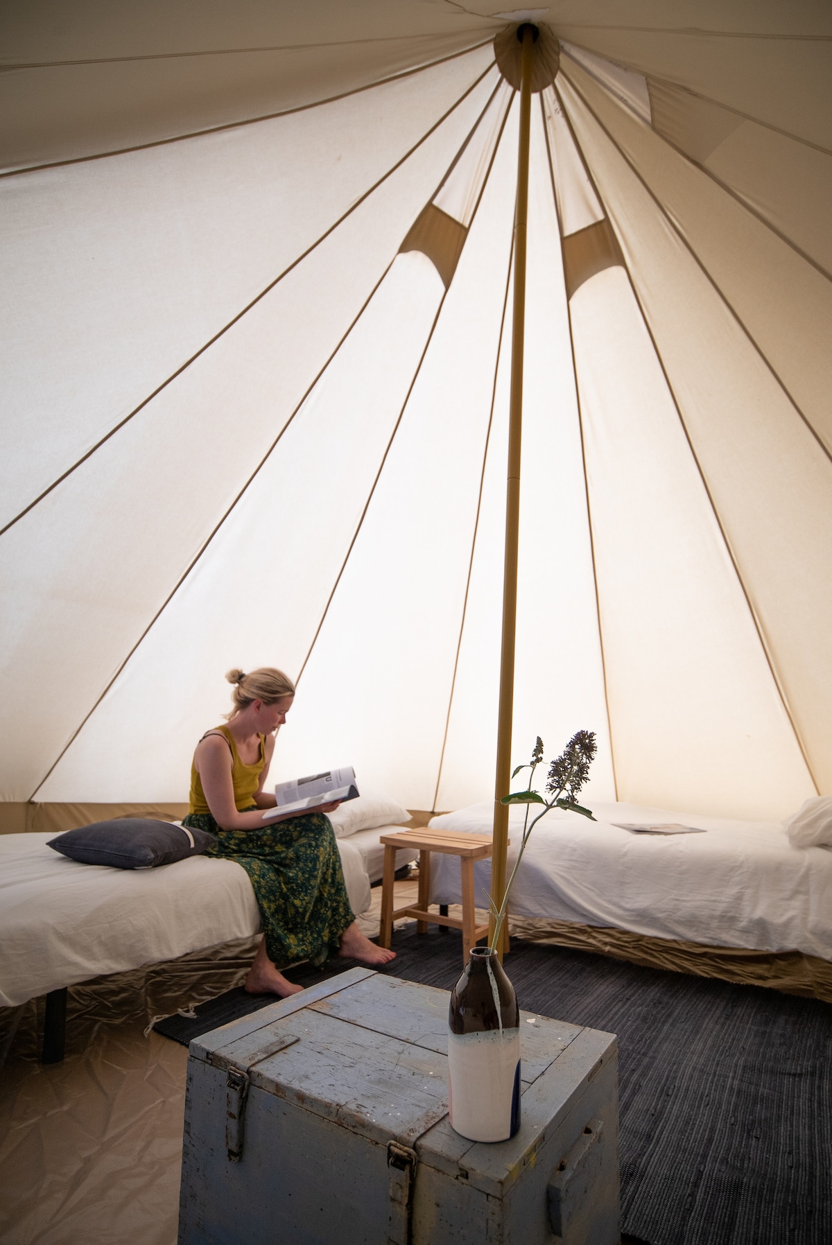 Un refugi per una nit o més, original i acollidor, per als entusiastes de l'acampada que busquin una mica més de confort ... La tenda, és una tenda de llenç de primera qualitat, muntada en una plataforma de coberta de fusta per una de les basses, equipada amb matalassos còmodes, edredons i coixins, il·luminació LED i una taula i dues cadires a l'exterior. llençols i esmorzars opcionals