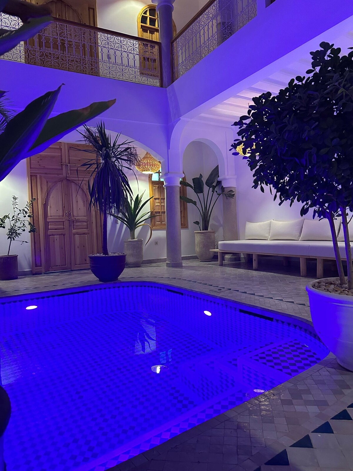 Submergeix-te en la història d'aquest allotjament únic i memorable. Vine a relaxar-te al nostre SAFYA Riad privat, renovat en estil tradicional marroquí amb un toc de modernitat. Literalment, em vaig enamorar d'aquest preciós riad durant l'embaràs, per això té el nom de la meva estimada filla. El pati central, amb aquest sublim mural a Zellige amb motius florals i piscina, serà el lloc perfecte per relaxar-se.