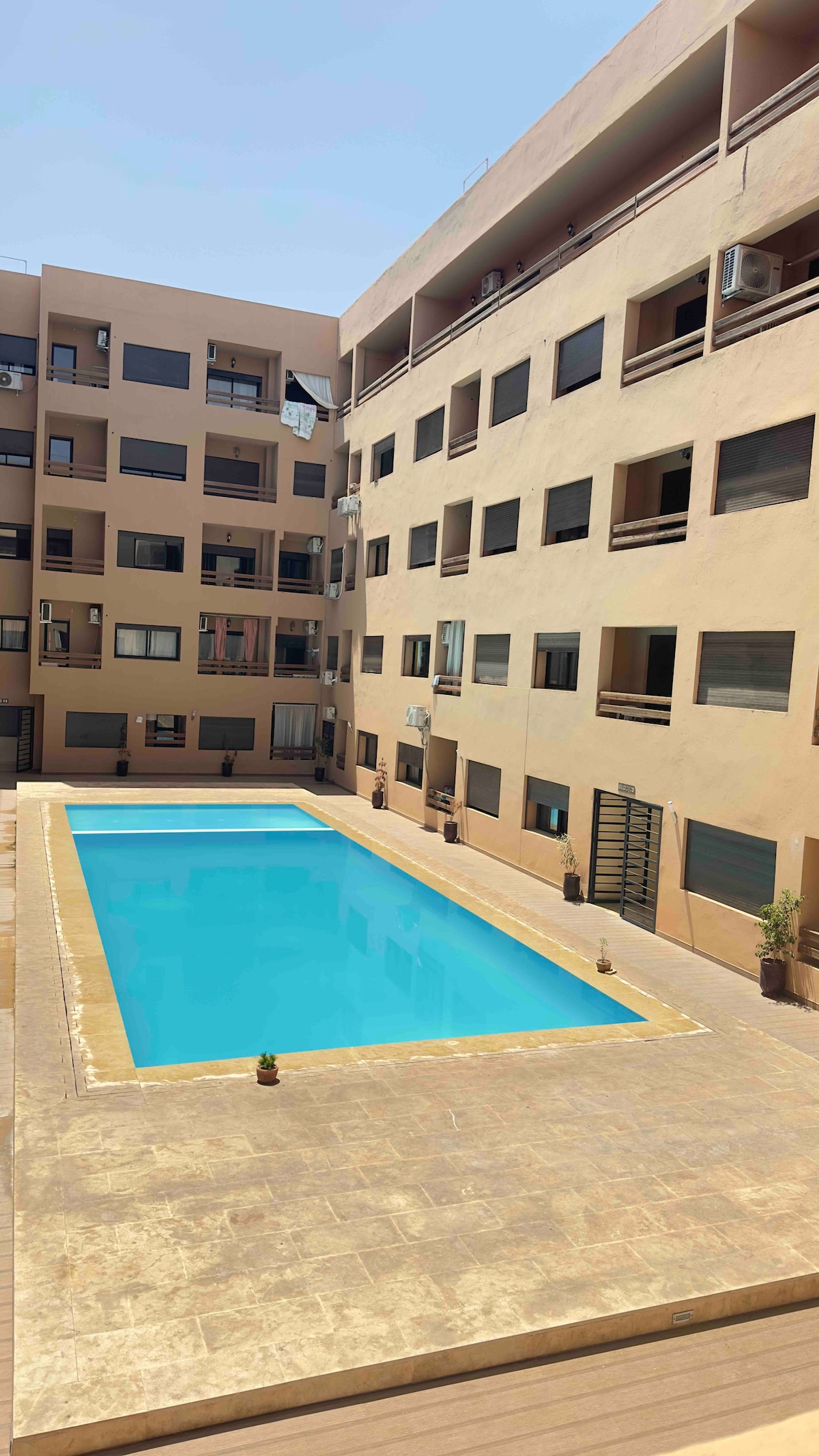 🌴Bienvenue dans votre oasis de confort à Marrakech! ✅ Check-in 24h/24 par une équipe chaleureuse | 📍 En plein centre-ville | 🌅 Terrasse avec vue sur la piscine | 💦 Résidence avec 4 piscines relaxantes au charme balinais Offrez-vous un séjour inoubliable dans un appartement moderne, lumineux et décoré avec soin, situé dans le quartier calme et prisé de Semlalia, à quelques minutes seulement du centre GUELIZ. Profitez d’un cadre relaxant, idéal pour allier détente et découverte de Marrakech.
