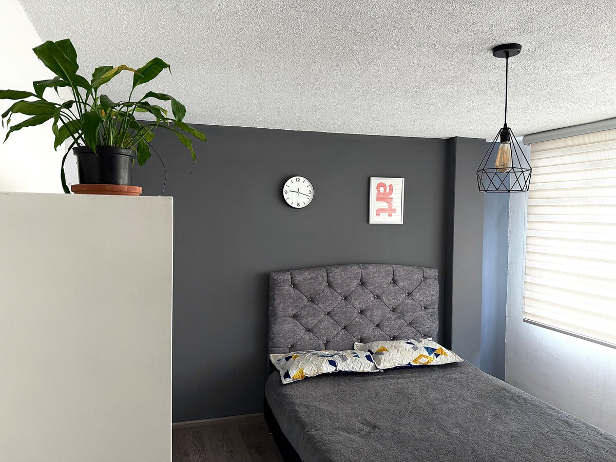 Loft lluminós i acollidor amb vistes impressionants a Bogotà Gaudeix d'un loft assolellat al cor històric de Bogotà. Aquest elegant apartament d'un dormitori disposa d'un còmode llit doble i un sofà acollidor, perfecte per a un tercer hoste. Una àmplia terrassa compartida amb graella, on podràs relaxar-te i gaudir de les impressionants vistes de la ciutat. Ideal per a aquells que busquen gaudir de l'encant de Bogotà amb comoditat i estil.