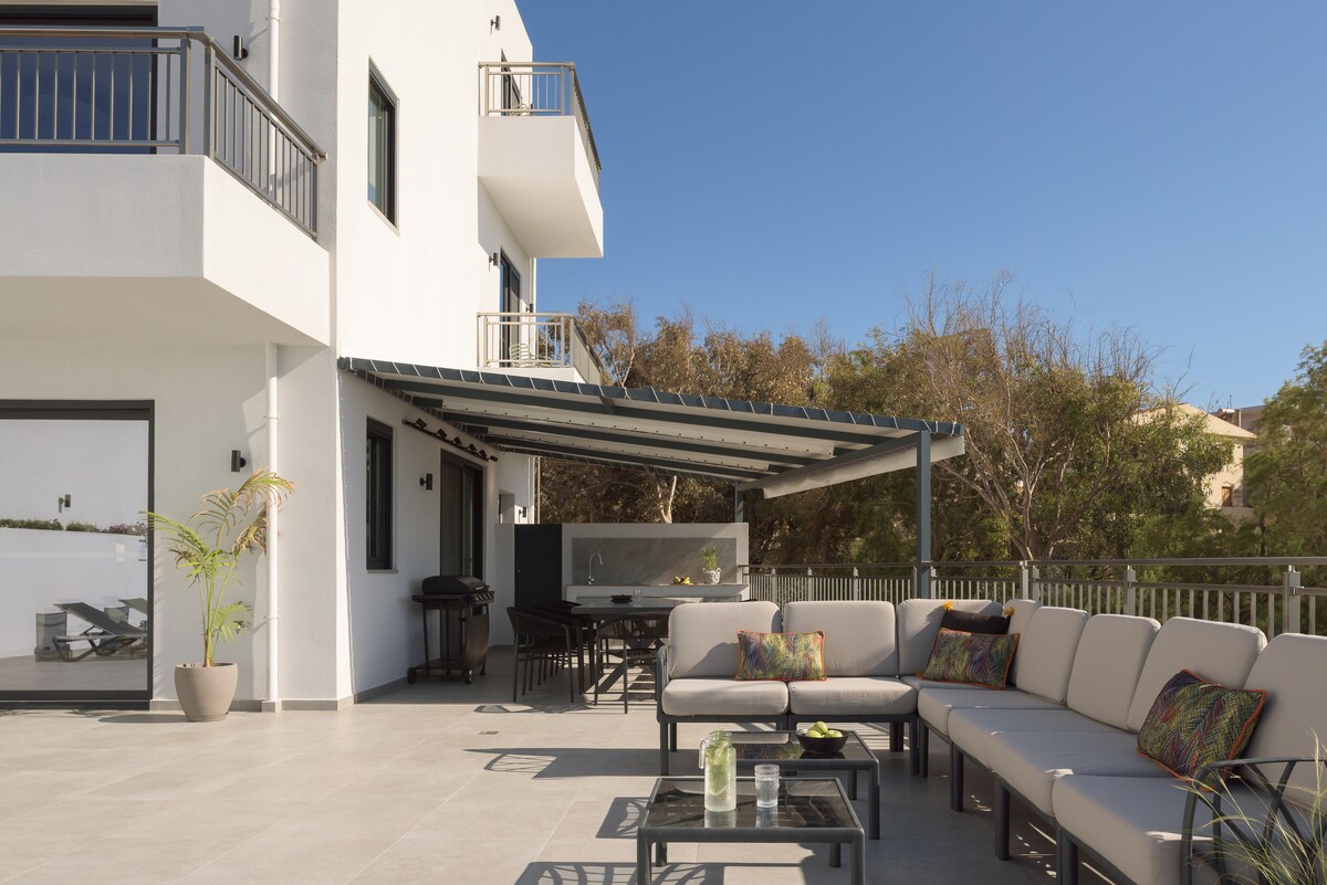 Aquesta vil·la privada, situada al cor del poble costaner de Panormo, gaudeix d'un entorn únic a pocs passos de la platja, amb excel·lents restaurants, cafeteries i botigues locals. Dissenyada per acollir fins a 10 hostes, la vil·la disposa de quatre elegants dormitoris, interiors emblemàtics, generoses terrasses exteriors i dues piscines privades, incloent-hi una piscina climatitzada amb jets d'hidromassatge i un sistema de natació a contracorrent.