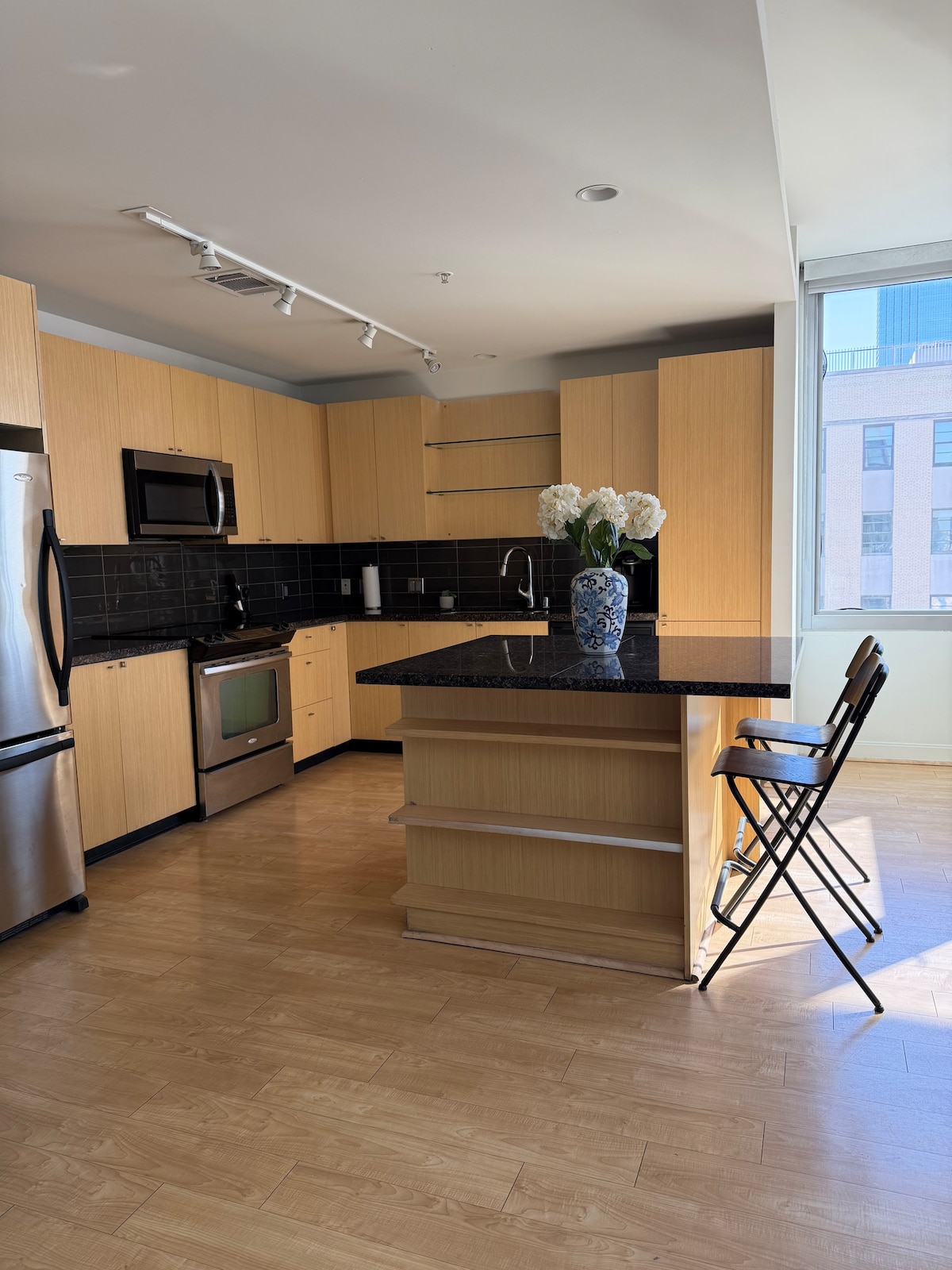 Viu el millor de la ciutat en el nostre refugi minimalista modern! Els animals de companyia s'allotgen de franc Gaudeix d'unes vistes impressionants de l'horitzó de la ciutat des de la comoditat del nostre elegant i elegant pis de gratacels. Situat al centre de la ciutat, estaràs a uns passos de les millors atraccions, restaurants de moda i bars animats. El nostre apartament és el refugi perfecte per a parelles, viatgers sols i professionals de negocis que busquen una base elegant i còmoda per a les seves aventures a la ciutat.