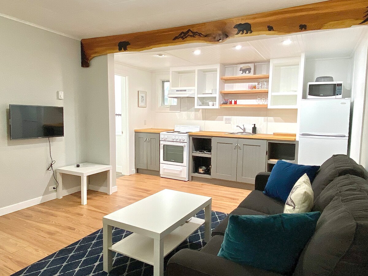 Acollidor, contemporani, 1 dormitori King, cabina independent amb sofà llit. Inclou bany de 3 peces amb dutxa de vapor, cuina americana, televisió de pantalla plana a cada habitació, llar de foc de gas, aparcament i coberta privada. Els hostes tenen accés a una banyera d'hidromassatge exterior coberta per 8 persones. Convenientment situat al costat de la carretera Trans-Canadà als afores de Revelstoke (a 5 km a l'oest), tot a 18 min. en cotxe fins a Revelstoke Mountain Resort, a 8 min. en cotxe fins al centre de Revelstoke i a pocs segons de senders per a motos de neu!