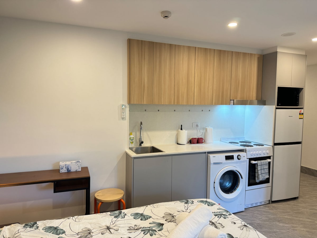 L'estudi privat i encantador situat al carrer frondós i a la ciutat acollidora de Revesby, a prop de cafeteries, restaurants, botigues (Coles, Woolworths), estació de tren i aeroport. A 6 minuts a peu de l'estació de tren. Tren exprés al centre de la ciutat/ Òpera a 25 minuts i a l'aeroport de Sydney a uns 14 minuts. Pots relaxar-te amb seguretat en una càlida "casa lluny de casa" Els estàndards de neteja ordenats i alts garanteixen una estada neta i còmoda. Un lloc ideal per a visitants solters/parelles/de negocis de curta durada/ 2 amics que viatgen junts.
