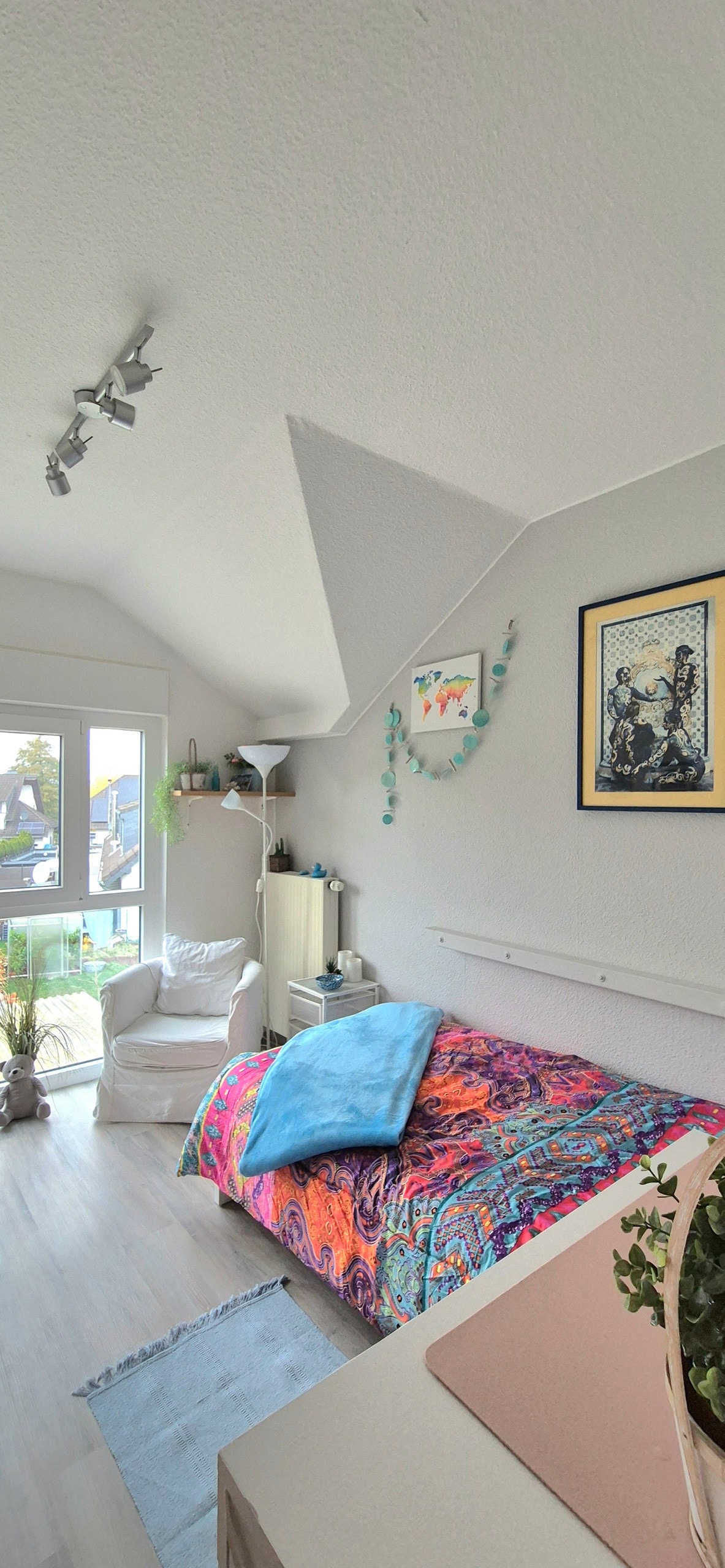 Dieses Zimmer verfügt über ein Arbeitszimmer über das man in das Schlafzimmer gelangt. Es sind dementsprechend also 2 Zimmer. Ideal für Studenten und Kölnbesucher. Bis zur Kölner Innenstadt sind es mit der Linie 18, 15 Minuten. Die Filmstudios in Hürth-Kalscheuren und der Hürth-Park befinden sich in unmittelbarer Nähe.