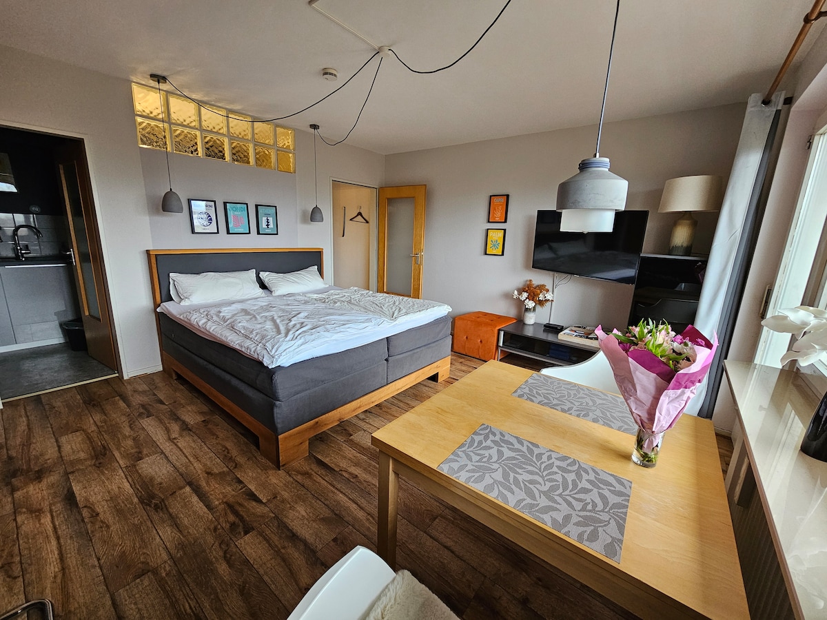 Lehne dich zurück und entspanne dich – in dieser ruhigen, stilvollen Unterkunft. Geniße den Südbalkon mit toller Aussicht und Frühstücke dort im Sonnenbad. Wir bieten eine kleine 1-Zimmer-Wohnung mit separater Küche und separatem Duschbad mit Regendusche und Wohl-Fühl-Temperatur. Ein guter Start zum Wandern, Paragleiten oder Radfahren.