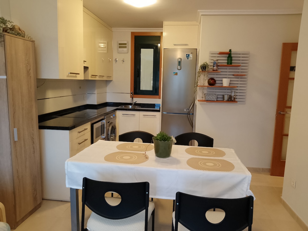 Crea records inoblidables en aquest allotjament únic ideal per a famílies. El pis consta de 2 habitacions, en les quals hi ha 1 llit d'1,50 i 2 lliteres de 90 respectivament, el bany complet amb cabina de dutxa, la sala d'estar-cocina totalment equipada amb estris de cuina, nevera, rentaplats, rentadora, sofà, TV... i una terrassa des de la qual s'accedeix a les zones comunes. Dins de la urbanització podem trobar un balneari, una pista de tennis i un gran jardí.