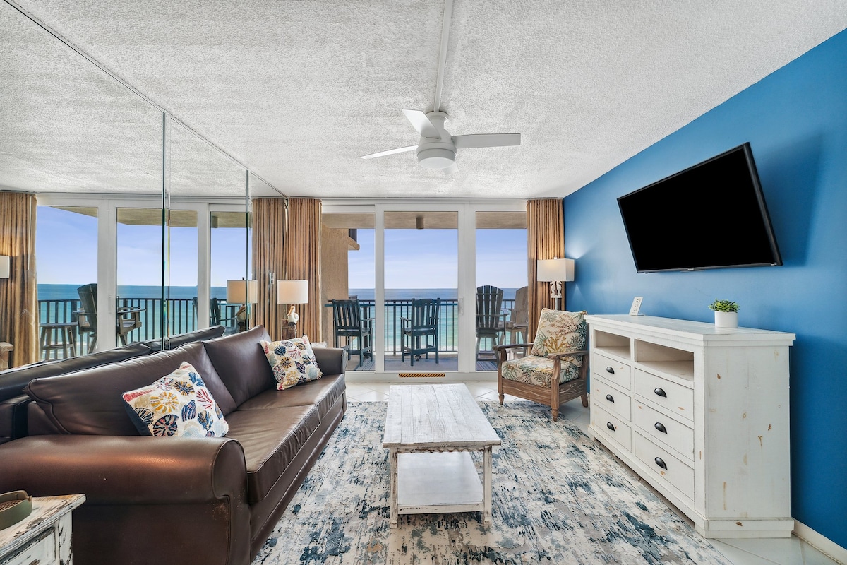 CADIRES DE PLATJA GRATUÏTES/ PARA-SOL INCLOSOS DE MARÇ a OCTUBRE!!! Aquest apartament d'1 dormitori i 2 banys davant de la platja està bellament remodelat amb molt d'espai per a parelles i famílies petites que volen relaxar-SE I DIVERTIR-SE al SOL a PCB, FL! Gaudeix del balcó privat davant del Golf, on es mostren les impressionants vistes de la platja i del Golf. Descobreix la piscina del costat est climatitzada de temporada directament a la sorra blanca de sucre i l'aigua turquesa.