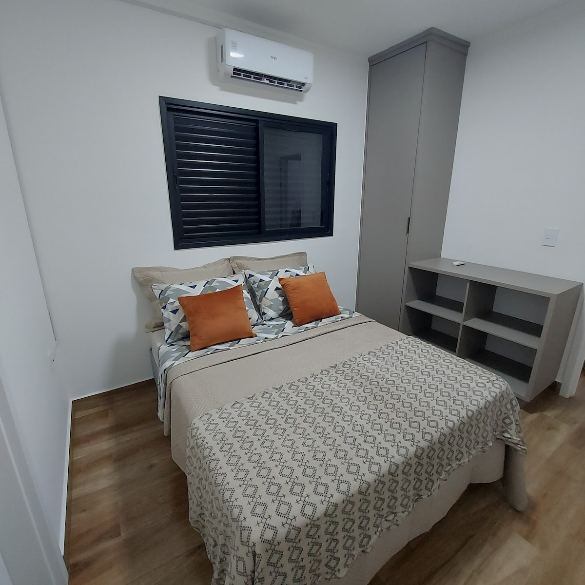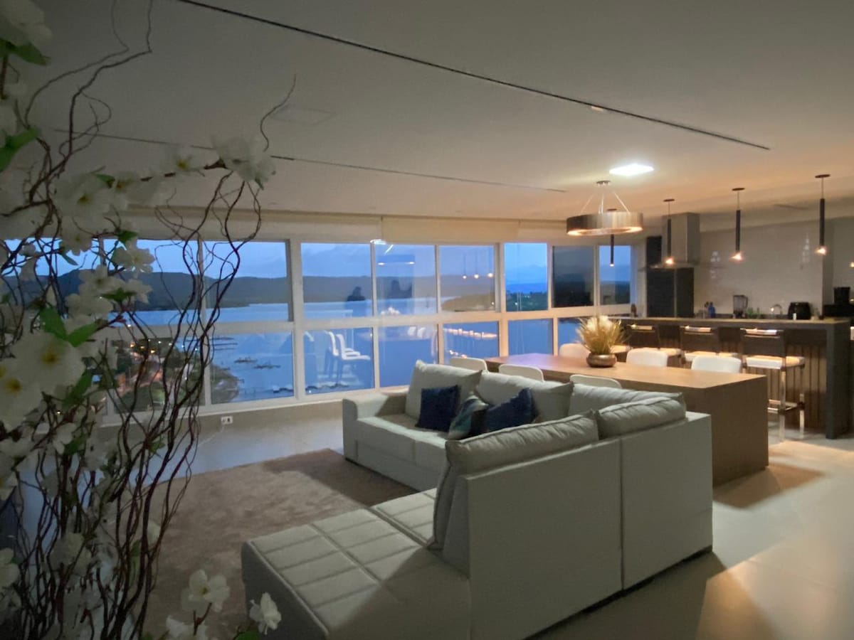 Pis nou a la regió central de Rifaina. A mig bloc de la presa. És al costat de la plaça, al costat d'un supermercat, bars, restaurants i una loteria. 1 Habitació gran amb aire condicionat, llit de matrimoni (doble), sofà llit doble i fins a dos llits individuals, per tant, fins a 6 persones, ideal per a famílies. Barbacoa, fogons, cuina equipada, vistes a la presa, rentadora, Un pany electrònic. Wifi. *Esmorzar de cortesia a Pousada Manacá. *Subjecte a disponibilitat.
