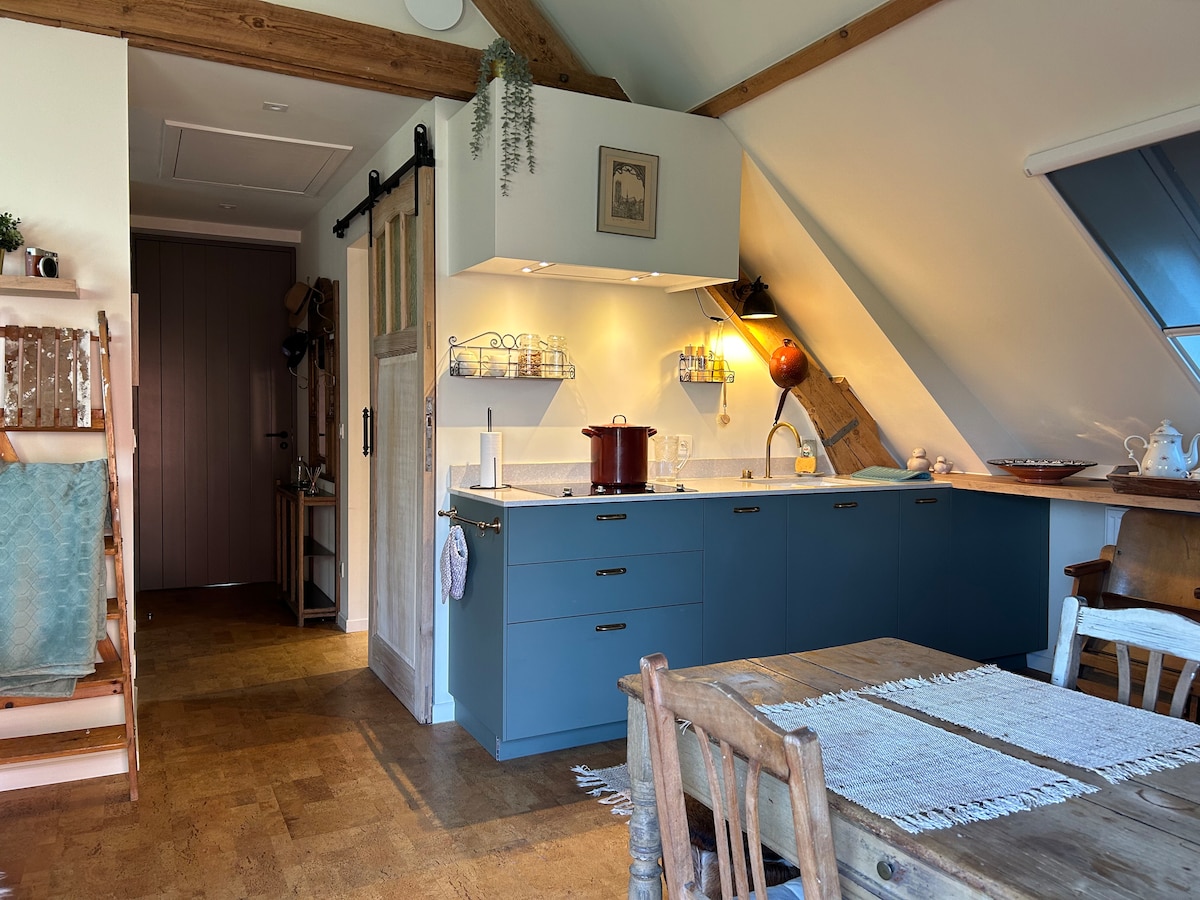 Relaxa't, descansa i sent-te com a casa en aquest acollidor espai. Hem convertit el paller de la nostra casa en un estudi amb caràcter. Cuina privada, bany privat amb banyera i dutxa, sala d'estar privada i terrassa privada. Situat entre els prats i, alhora, a prop de la ciutat de Malines. Les ciutats de Lier, Anvers i Brussel·les també són a prop.