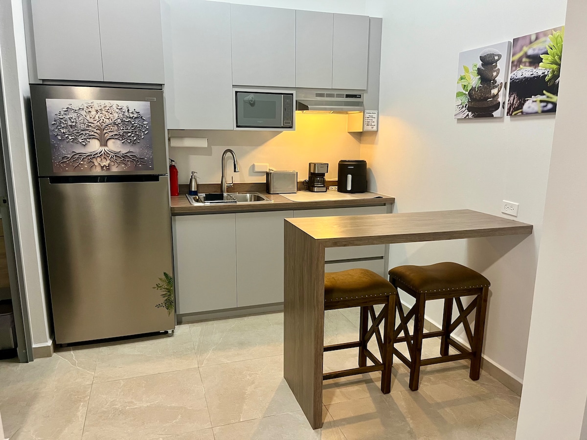 Vil·la relaxant ideal per a parelles, situada al cor de la comunitat de surf de Rincón. Aquest estudi immaculat disposa d'un llit «king size» còmode, una decoració costanera i un interior lluminós i tranquil. Gaudeix d'una àmplia zona d'estar a l'aire lliure amb còmodes seients, una hamaca relaxant i vistes tropicals, a més d'un balcó privat i accés a una terrassa exterior compartida envoltada de jardins exuberants. A pocs minuts de platges de surf, natació, submarinisme i postes de sol a l'oceà i a la muntanya.