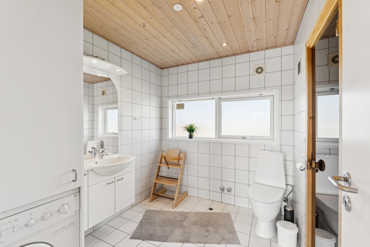 El preu no inclou l'ús de l'electricitat i l'aigua. Casa rural de benestar a Hvide Sande per a 8 persones - a 300 m del mar del Nord i a 400 m del fiord de Ringkøbing! Distribució oberta amb finestrals grans i vistes a les dunes. Gaudeix d'un bany salvatge, sauna d'infrarojos interiors, sala d'activitats amb billar/taula de billar, fogons de llenya, carregador de cotxes elèctrics, wifi gratuït, televisor Chromecast i barbacoa. Perfecte per a la relaxació i l'aventura, a només 6 km del centre de Hvide Sande. Gaudeix de la bellesa i la comoditat de la costa oest danesa, ideal per a les vacances en família o per a l'amabilitat!