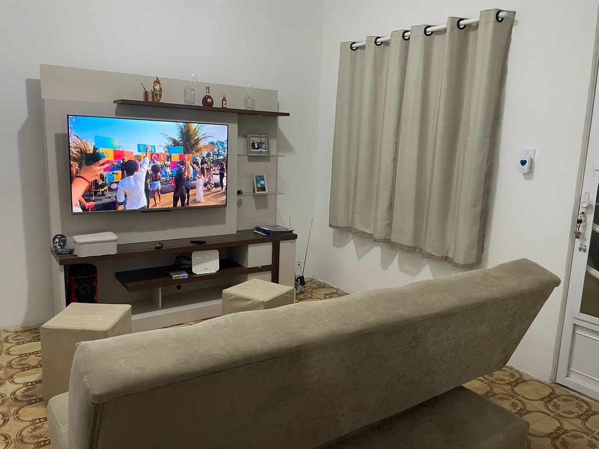 Casa gran, ben situada. Amb dos dormitoris amb bany. Mobiliari complet: sala d'estar ben ventilada amb ventiladors de sostre, televisor intel·ligent, wifi i sofà. Cuina equipada amb electrodomèstics nevera Frost Free, estufa de 4 fogons, forn elèctric, entre d'altres. Habitacions moblades 1 amb 4 llits, ventilador i aire condicionat, i bany. L'altre dormitori llit doble amb llit individual, aire condicionat, armari i bany. També tenim un vàter. Zona de servei. Zona gourmet amb barbacoa .