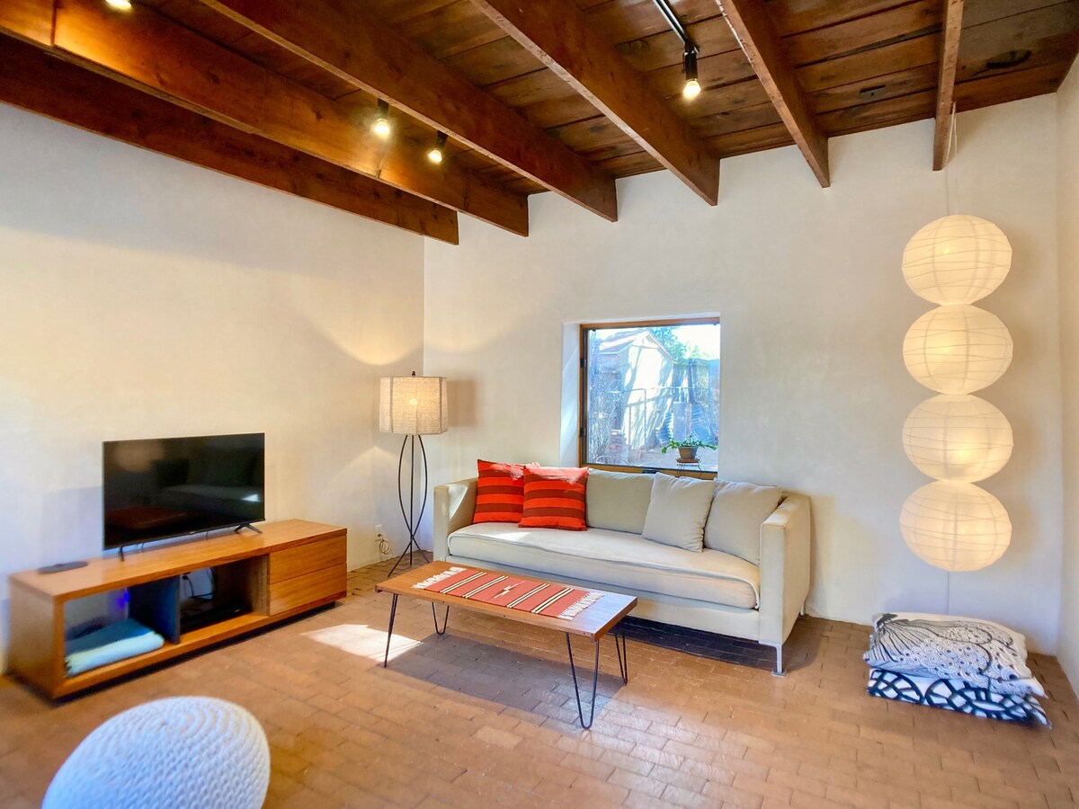 Aquesta moderna casita del sud-oest es troba en una propietat històrica d'adobe del 1923 que combina materials d'olde i equipament i serveis moderns. Artista construït; aporta un toc modern a la teva aventura a Albuquerque. La Casita és espanyola per a una petita casa, i aquesta casita és totalment una casa. Compta amb cuina completa, llit «king size», dutxa amb cascada, pati privat i portes d'entrada de butxaca que fusionen l'aire lliure de NM amb el nostre acollidor interior. Permís:052140