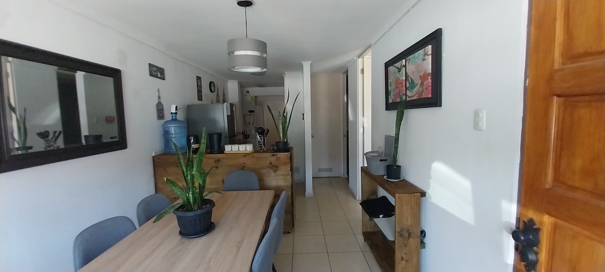 Acollidor apartament per a 2 persones, perfecte per explorar el millor de Coquimbo i la regió. A només 5 minuts en cotxe de la platja i a 7 minuts del centre de la ciutat, amb fàcil accés a La Serena, la vall de l'Elqui i Punta Choros. Gaudeix de platges com La Herradura i Totoralillo, de la cultura a la Creu del Tercer Mil·lenni i de la vida nocturna al barri anglès. Cuina equipada, wifi ràpid i aparcament. També acceptem animals 🐾 de companyia petits amb una tarifa única de 6000 $ per estada.