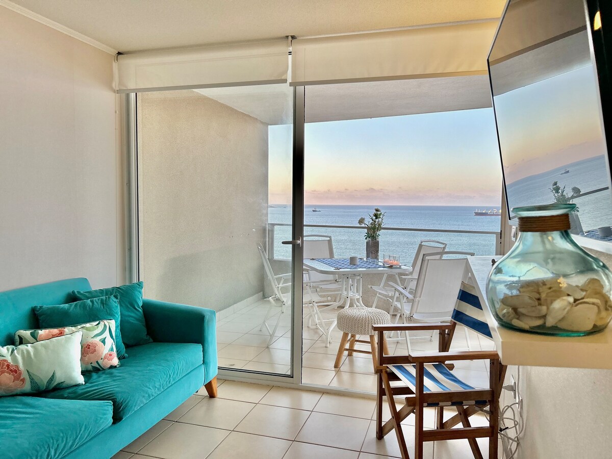 Escapa't a Coquimbo! Acollidor pis per a 5 persones davant de la platja, amb 2 dormitoris (llit doble, caseta i sofà llit), cuina totalment equipada, wifi, rentadora/assecadora, vigilància les 24 hores, aparcament privat i ascensor (planta 13). Situat a només 2 blocs del centre comercial Vivo, el Centre, els supermercats, la terminal d'autobusos, la cala, al costat de la fira local i activitats com ara passejades en vaixell pirata. Ideal per descansar, gaudir del mar i explorar la zona. Reserva la teva estada i viu l'experiència!