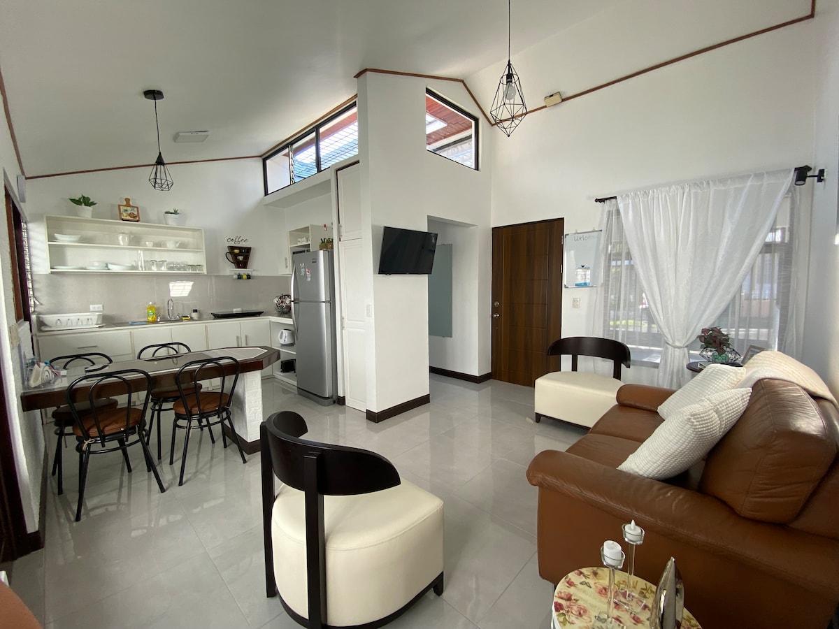 Welcome to La Casita! The house is less than 5 minutes from Juan Santamaria International Airport, City Mall, Mango Plaza, Plaza Real, and Walmart. Located in a quiet, peaceful neighborhood with a small park and a bakery at the top of the road. La Casita is a modern, newly renovated house with comfort and cleanliness in mind. The house has two bedrooms, two bathrooms, and a home office. The open kitchen is fully equipped, with the living area leading out to the garden patio.