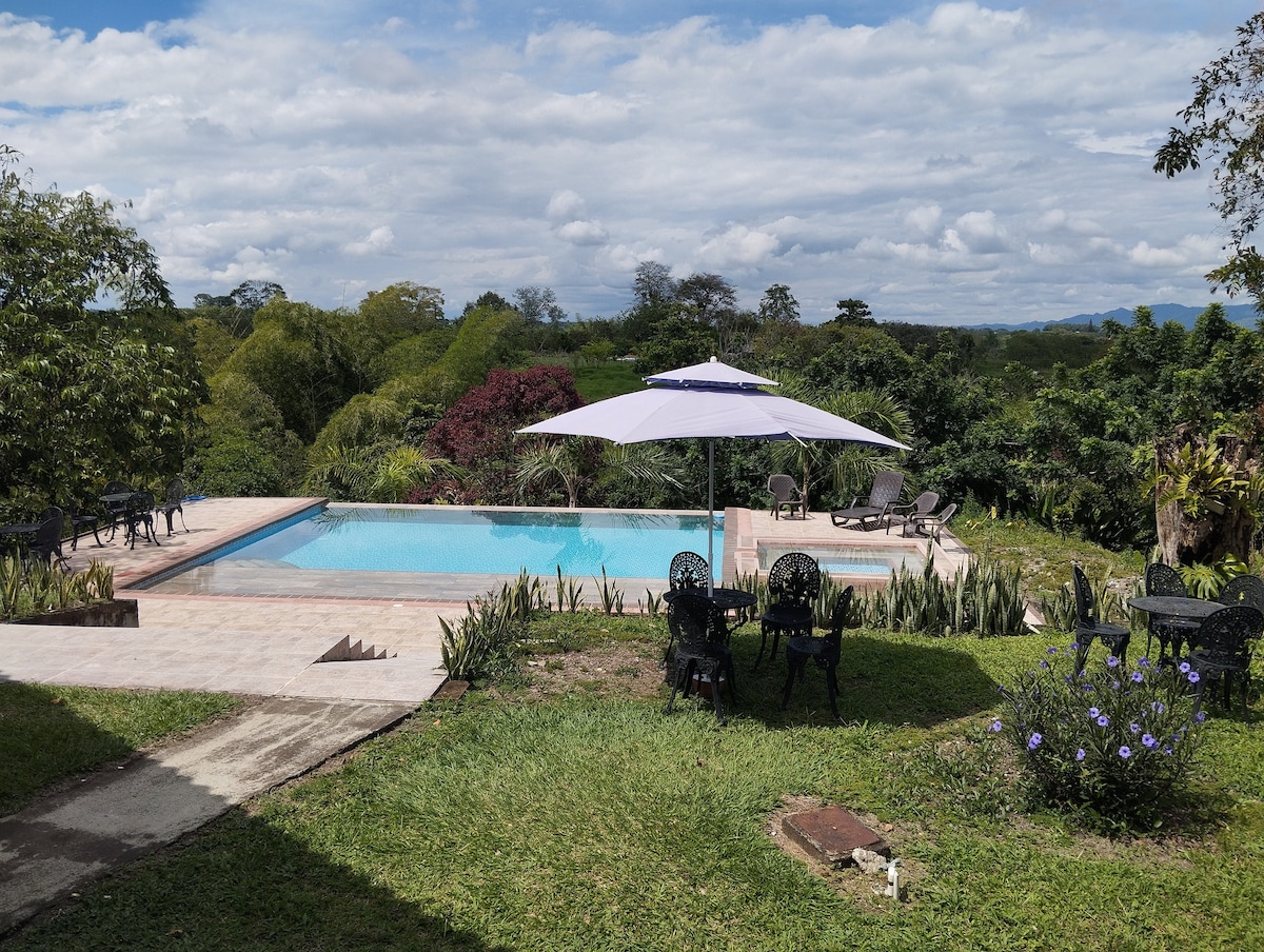 Aquesta bonica granja situada a només 40 minuts de la ciutat de Manizales ofereix els espais perfectes per a la resta de la família i els amics, la barreja entre les seves palmeres, postes de sol i una piscina espectacular et carregarà de l'energia que té l'Eix de cafè. Estem en una zona estratègica a prop de Ruiz nevat, fonts termals de tardor, fonts termals de Santa Rosa, la catedral de la Basílica de Manizales, un recinte pensat.